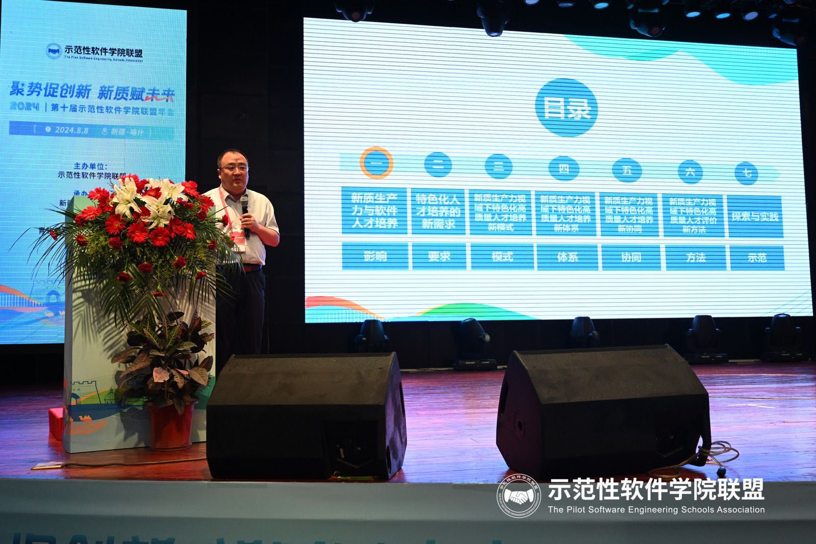 郑江滨受邀在大会发表主题演讲,围绕新质生产力视域下的软件人才培养的新模式、新体系、新协同及人才培养新方法等多个维度,分享了骰宝游戏