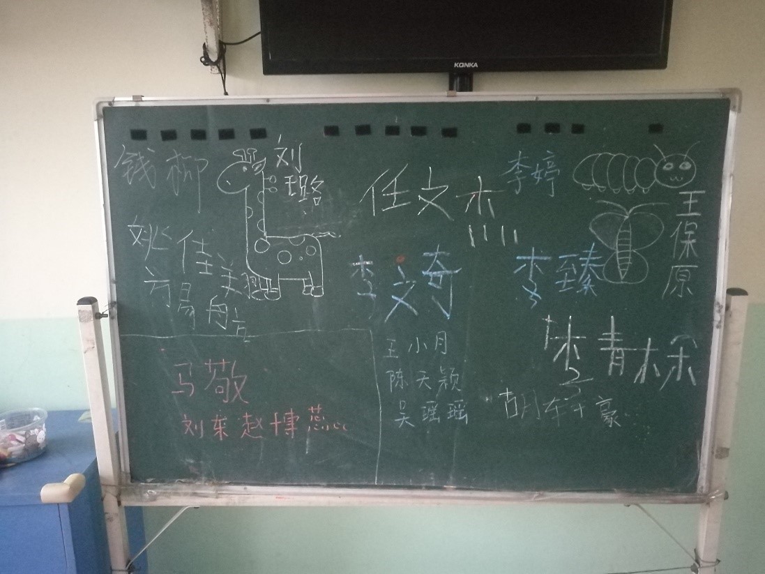 作为第一次参加这种活动的我,深切感受到孩子们发自内心的开心,他们真的很喜欢我们这些哥哥姐姐们的到来。在活动中大家看着黑板上的画,进行临摹,并在哥哥姐姐的帮助下画一些可爱的小动物,看着他们的开心的笑容和绘画成果,心中甚是欣慰。唯一的遗憾就是第一次在黑板上教孩子画画,经验不足,没能和孩子们展开很好的互动,所以自己以后会多多参与类似的活动。
