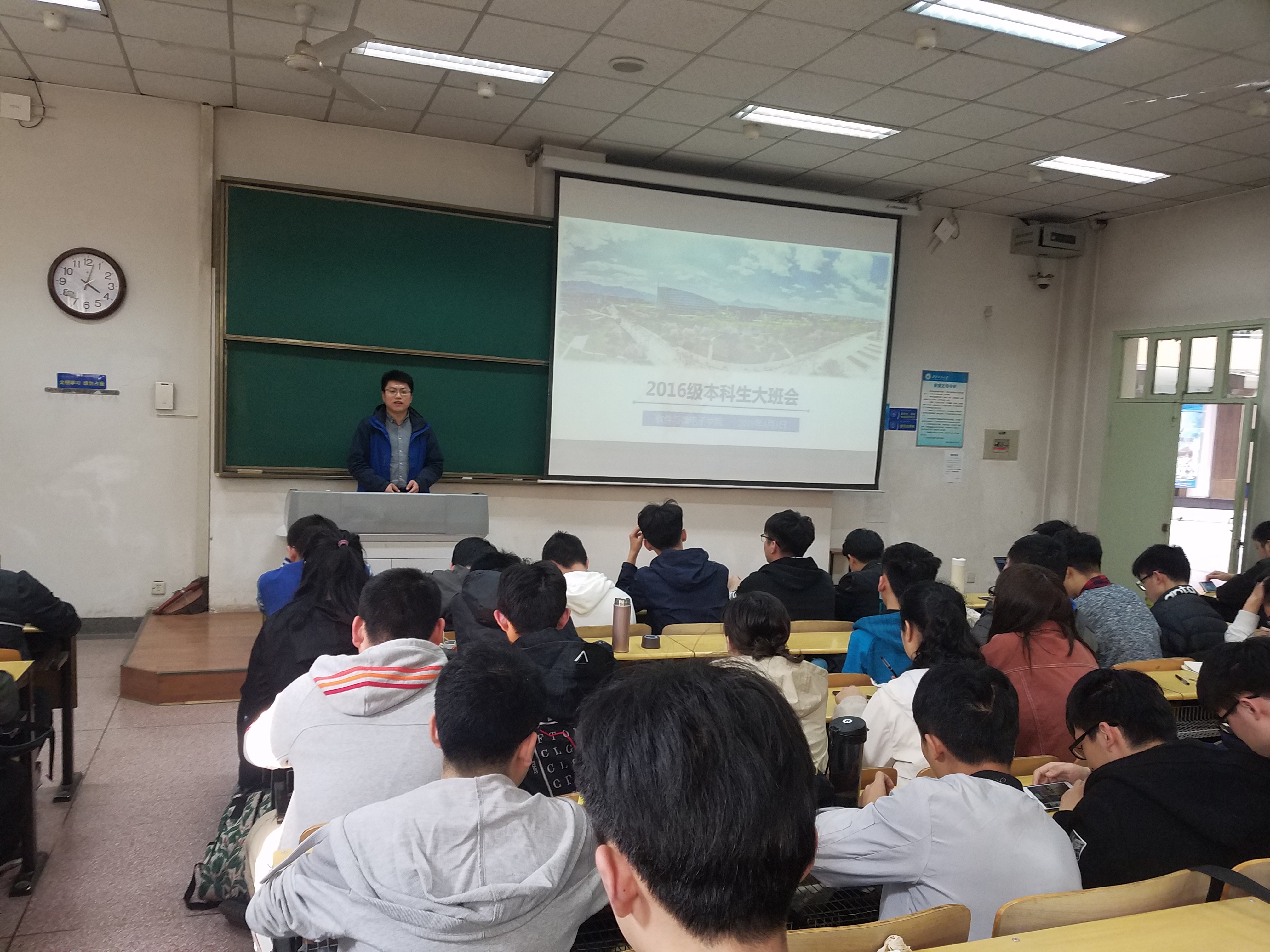 2016级本科生春季安全教育主题班会在研究生西馆XB101举行,班会由学生辅导员胡亚杰主持。本次班会围绕学生心理健康教育、春季安全教育、2018届毕业去向情况等方面展开。