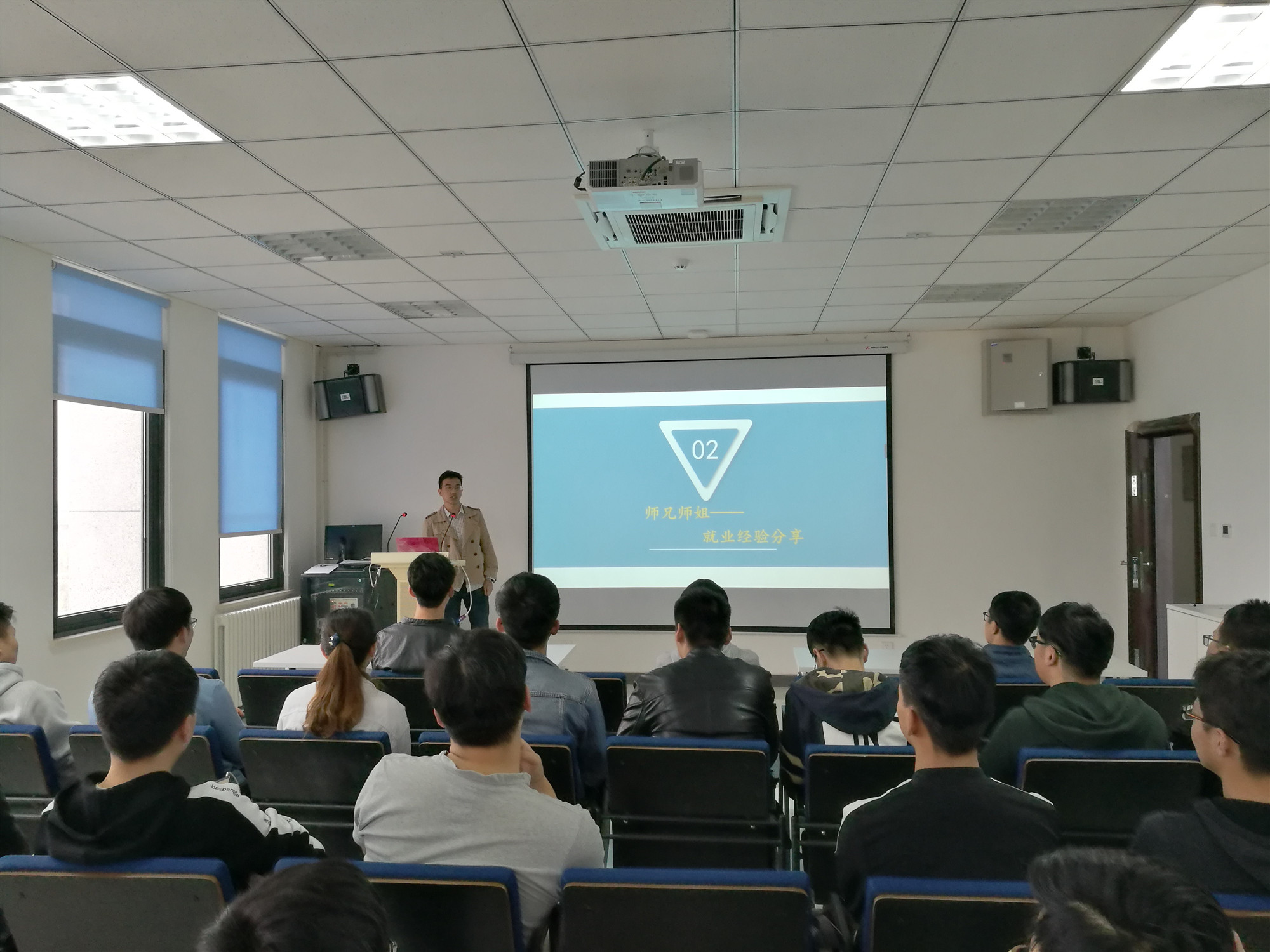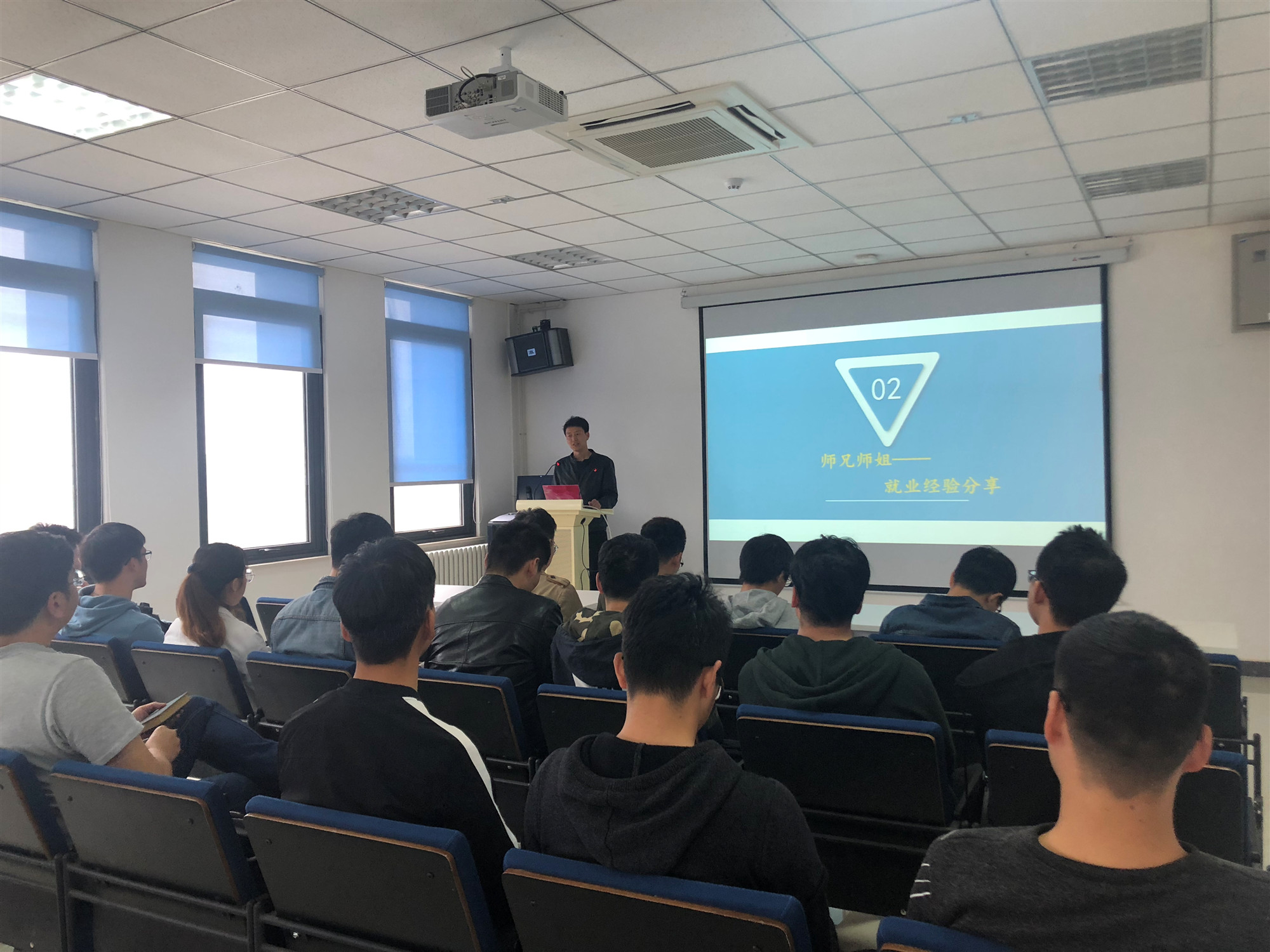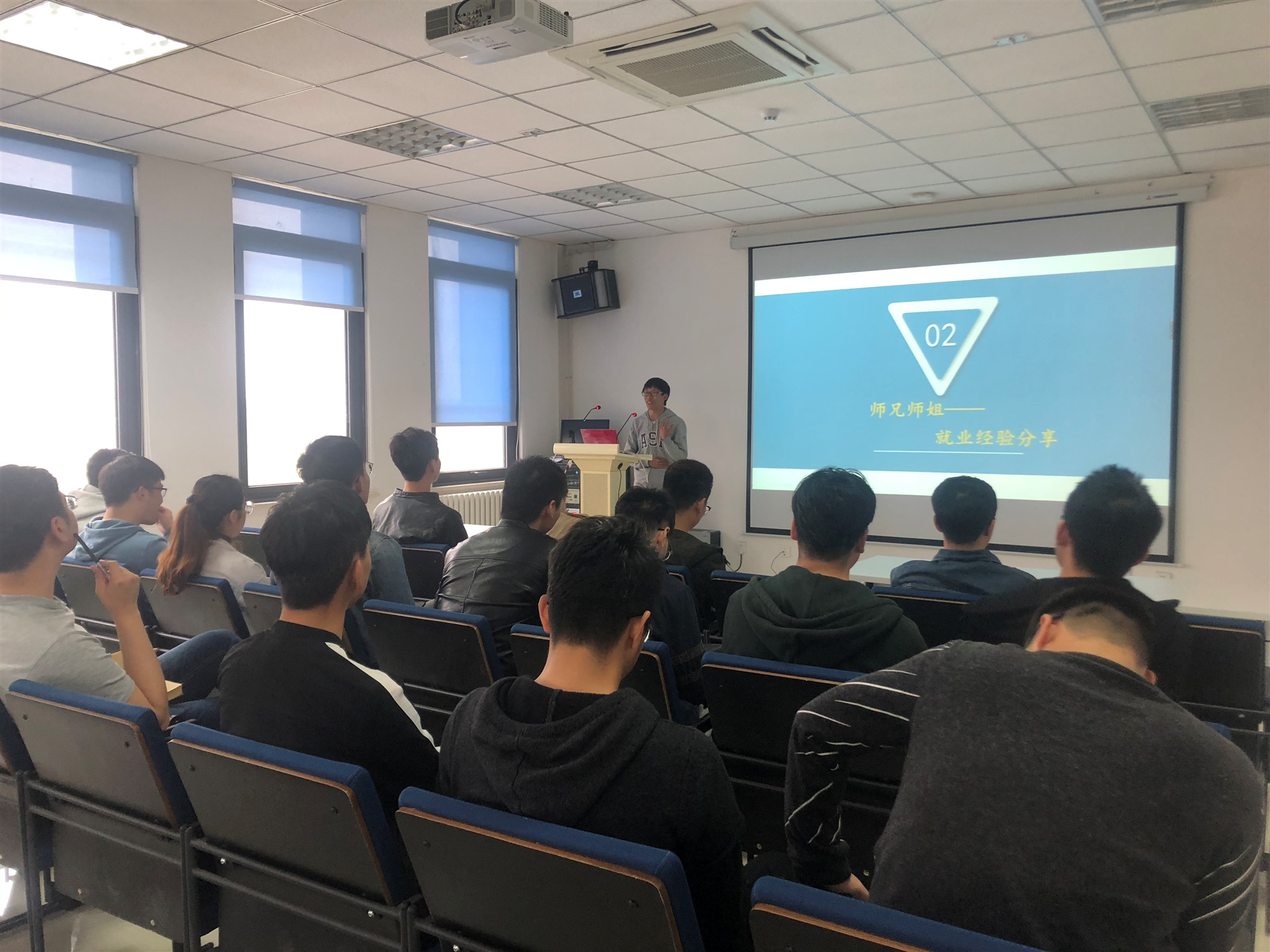邀请到了今年签约腾讯、阿里、华为等知名公司的毕业生前来分享就业的经验。在经验分享过程中,签约北京还是科技有限公司的2019届毕业研究生肖金霸为大家分享了自己在就业过程中的经验,希望大家都能打好坚实的技术基础,为顺利签约做好铺垫;签约浙商银行的卜迪说到:“研究生在学习科研中要善于发现问题,同时还要积极解决问题。只有在发现问题并努力解决问题后,自己的能力才会得到更好地提高。”签约阿里巴巴的张仁宇曾在美团、腾讯等知名公司实习,他为大家分享了自己的实习经验和投递简历的技巧,在座的同学们纷纷表示很为受用;签约华为的王文杰询问到师弟师妹们目前的实习情况,并为大家分享了实习与签约之间的联系,希望大家都能把握好实习的机会;同样签约华为的朱皓谈到研究生要尽早对自己的未来进行规划,同时要树立好自己的信念与信心,并努力朝自己的规划目标去努力。会后,2017级、2018级研究生与师兄们积极沟通交流,关于实习的疑惑、就业方向的选择、就业单位的选择方面都进行了深入的交流。