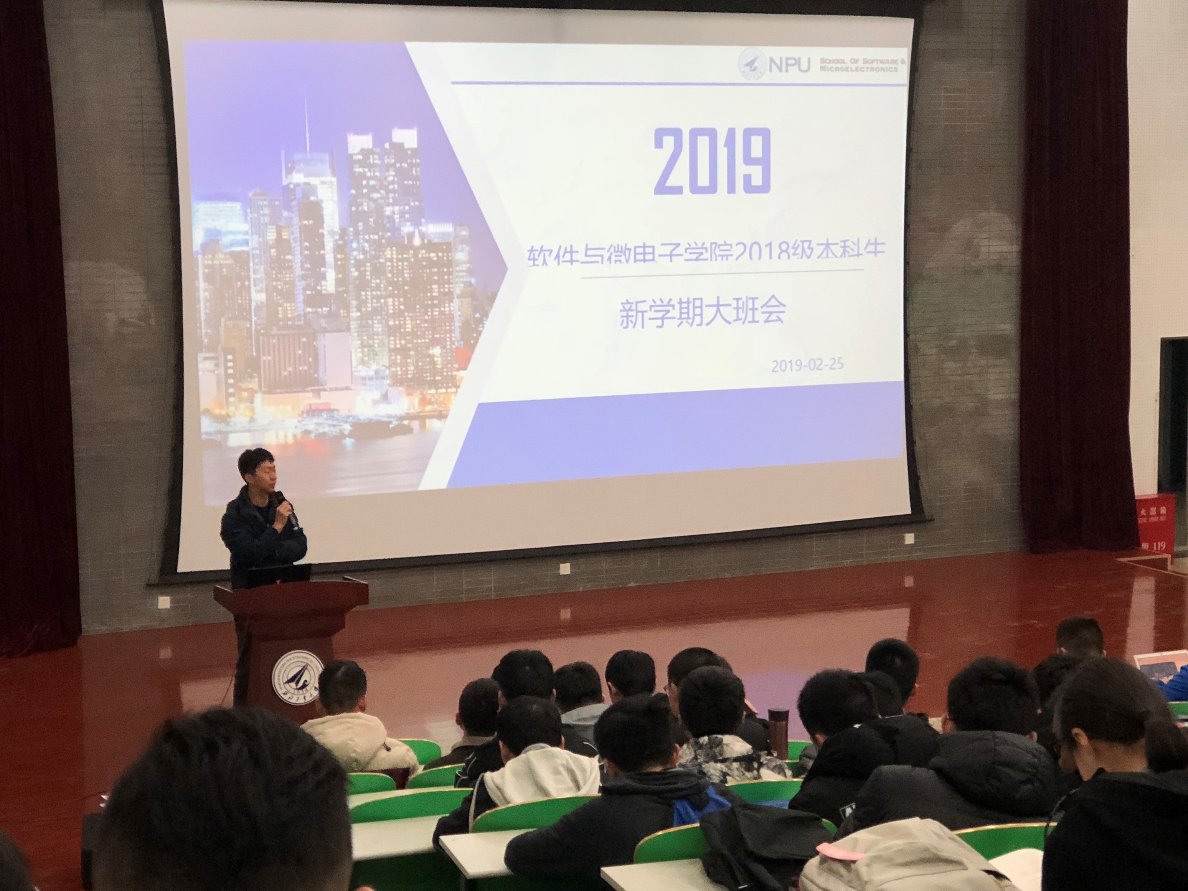 2018级本科生2018-2019春学期第一次大班会在教西A100教室如约而至。本次会议由2018级辅导员樊超主持,从喜迎新征程,回顾旧学期,展望新学期,规则与制度四个方面对上一学期的成绩与工作进行总结与分析,对新学期的学习生活方方面面进行展望和安排。