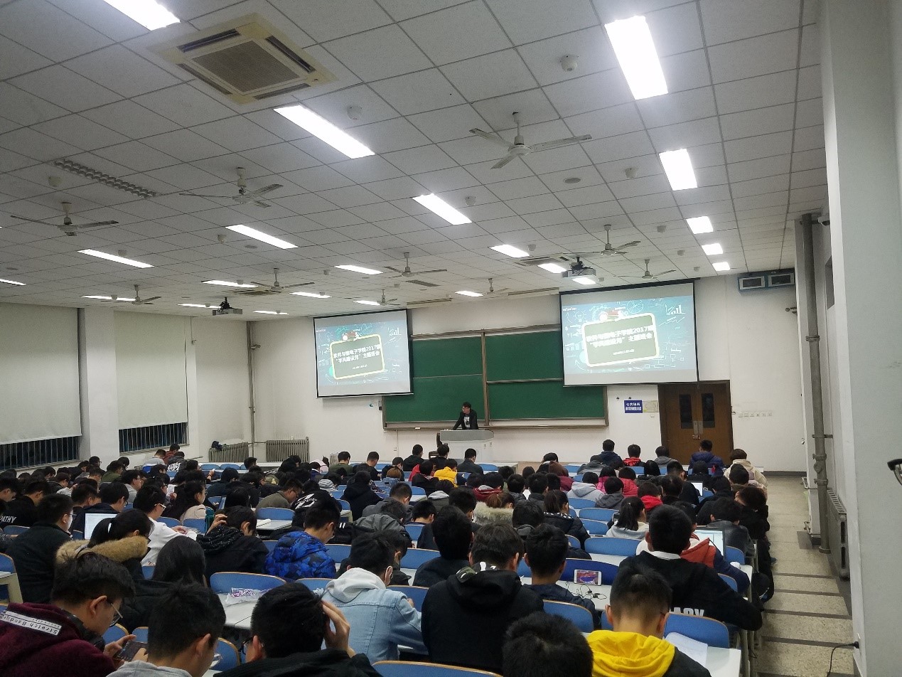 随后,陈智通老师分析了学习成绩、科技竞赛、社会工作、志愿服务等方面对于未来工作、读研、出国的重要性,并举出实例,他提醒同学们现在的每一份努力都是与今后的机遇、收获息息相关的。大学就是不断提高自己在这些方面能力的关键时候,同学们要把每一场考试当检验知识体系漏洞的契机,要把每一个技竞赛作为提高知识应用能力的平台,要把每一项社会工作当成锻炼个人综合能力的机遇,要把每一次志愿服务作为培养个人社会责任与社会意识的舞台。
