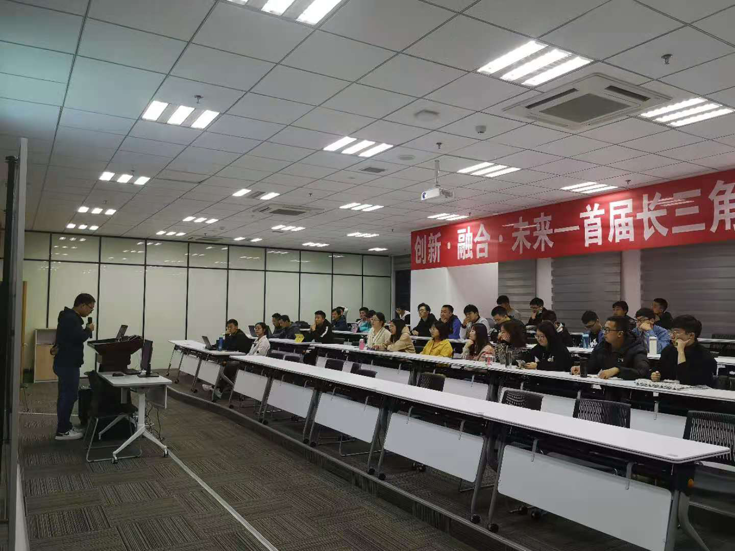 太仓长三角研究院203会议室,“仓秦讲座”第七期又如约和同学们见面了,此次讲座是刘春老师为我们带来的“智能语音助手的基本架构与算法原理”。