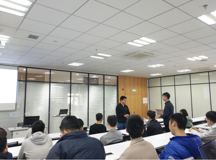 太仓校区在长三角研究院203教室召开出门问问公司宣讲交流会,宣讲主题为AI语音交互技术交流及应用场景分享,宣讲会由高利鹏老师主持。