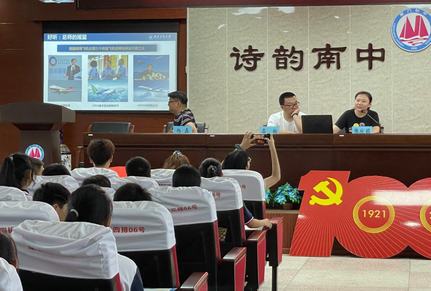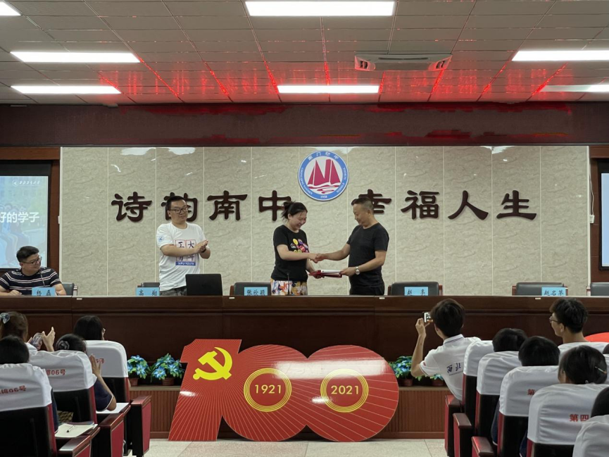 实践队带队老师高翔以及实践队全体成员和南门初中学生,在会议中,赵校长首先对我们的到来表示热烈欢迎,并向我们介绍了南门初中国家级“国防教育示范校”、区级“足球特色骰宝游戏