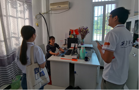 随后,实践队分为三组分别在大湾村各处进行调研,行程约两小时。第一组由潘泽华副队长带队,主要负责采访当地村民,地点有当地卫生所等。第二组由张家瑞老师带队,主要负责采访当地旅游中心负责人,地点有当地旅客服务中心等。第三组由顾承泽队长带队,主要负责调研当地产业扶贫成果,地点为当地漂流中心。