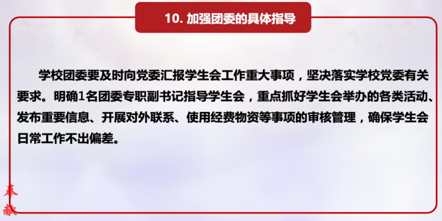 最新的指导思想和工作内容。研究生代表大会是发挥这项职能的最好方式,会议还列举了以往研究生代表大会成功解决学生问题的案例。