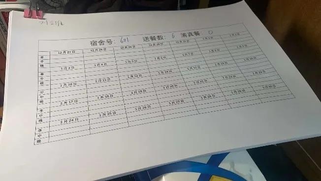 21级研究生,自疫情封校以来,他积极参加云天苑E座的取餐志愿服务。他在12月28日帮助搬运配送餐,并制作了一种张贴在宿舍门口的送餐统计表,帮助送餐志愿者更好地了解每个宿舍的送餐需求,配送时只需要对应打勾即可完成登记,该方法已经在云天苑E座进行推广,较大提升了配送效率,使得大部分同学可以在志愿者取餐后的半小时内拿到热气腾腾的餐食。