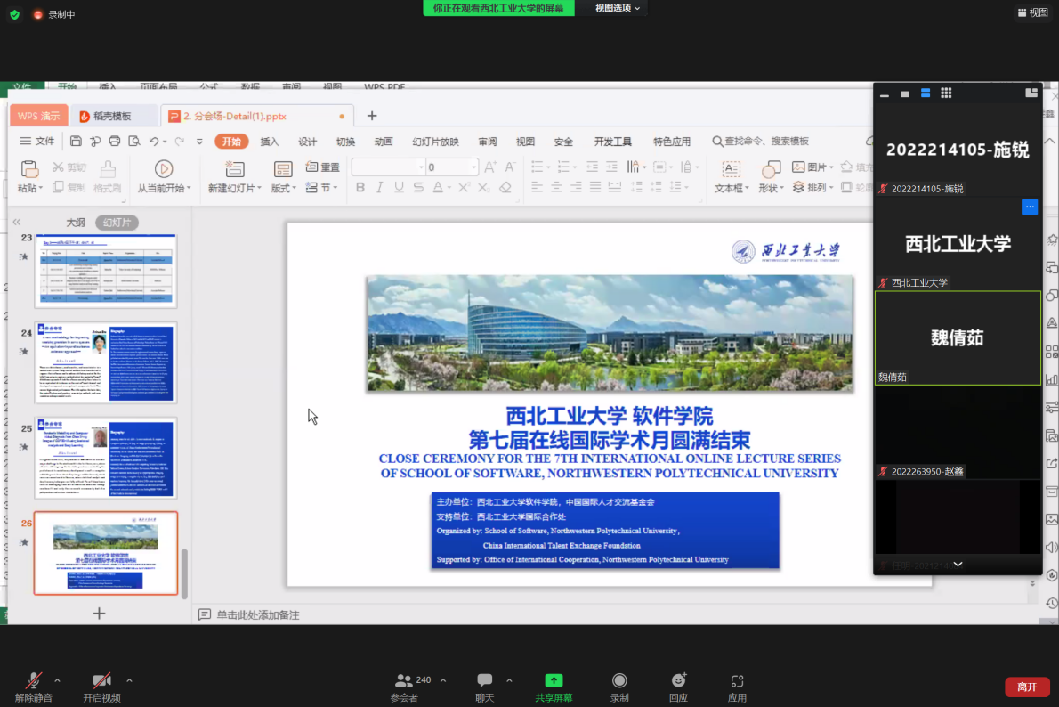 魏倩茹老师宣布本次国际学术月活动圆满结束,并表示活动的结束只是暂时的,骰宝游戏