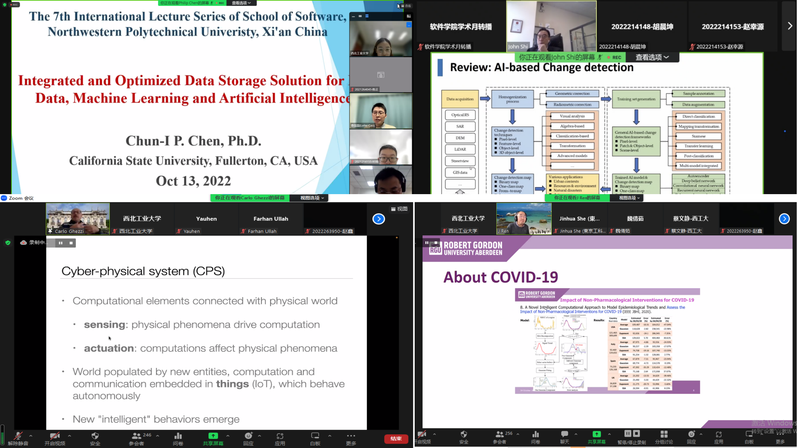 此外,还有任金昌教授, Josué Selva教授,策力木格教授,李海宽教授,Muazzam Khattak教授,李鹏副教授,Sohail Jabbar副教授,FarhanUllah副教授,Gautam Srivastava副教授围绕物联网、智慧城市、大数据、区块链、人工智能等软件工程的前沿主题分别作了学术报告。大咖齐聚,为同学们带来一场学术盛宴。