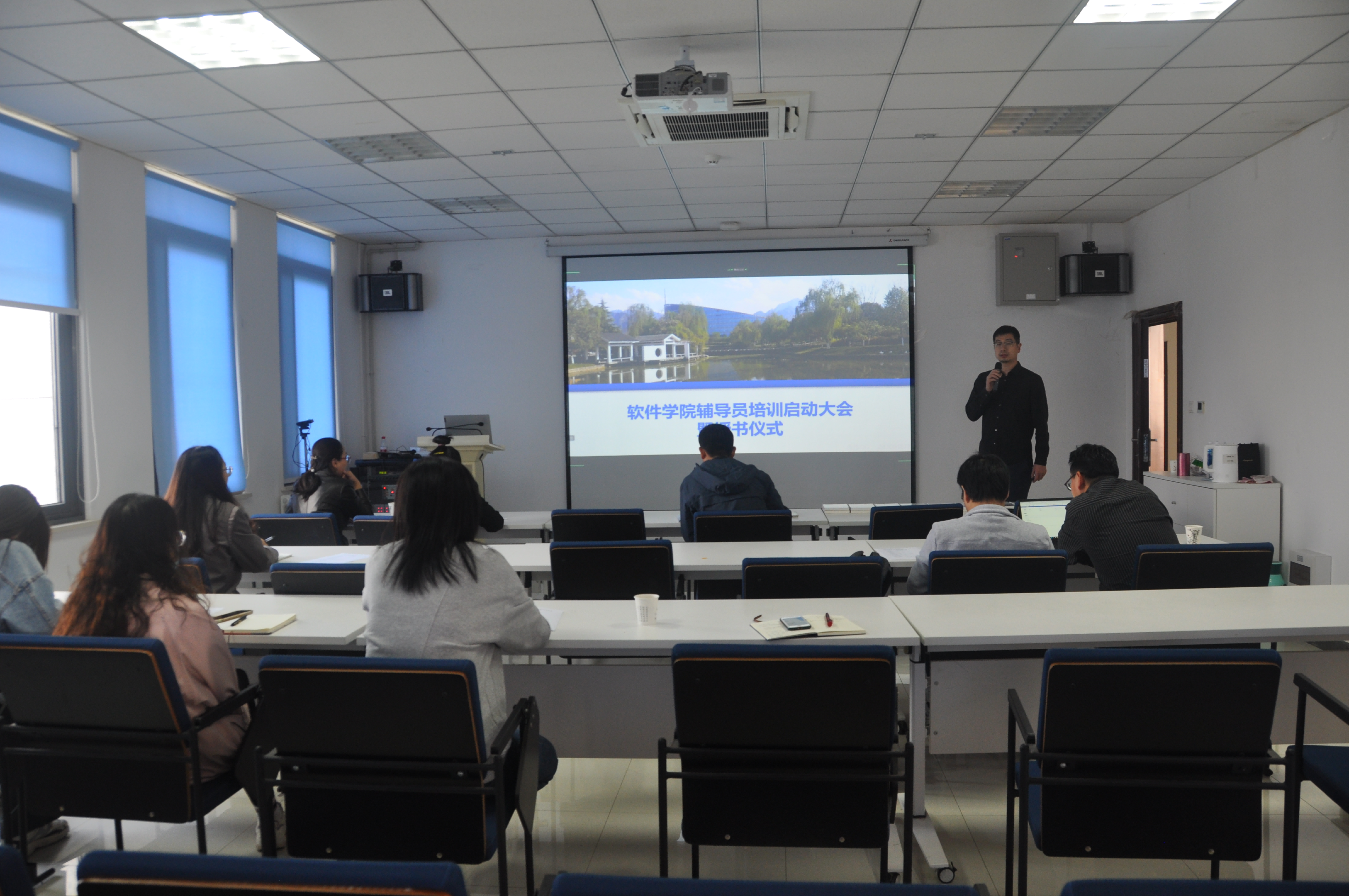在启翔楼401报告厅召开辅导员培训启动大会暨授书仪式。党委副书记(主持工作)李晗,党委副书记张龙,专职辅导员张记国、高利鹏、吴逾强(线上),以及学生工作助理、兼职辅导员参加会议,特邀骰宝游戏