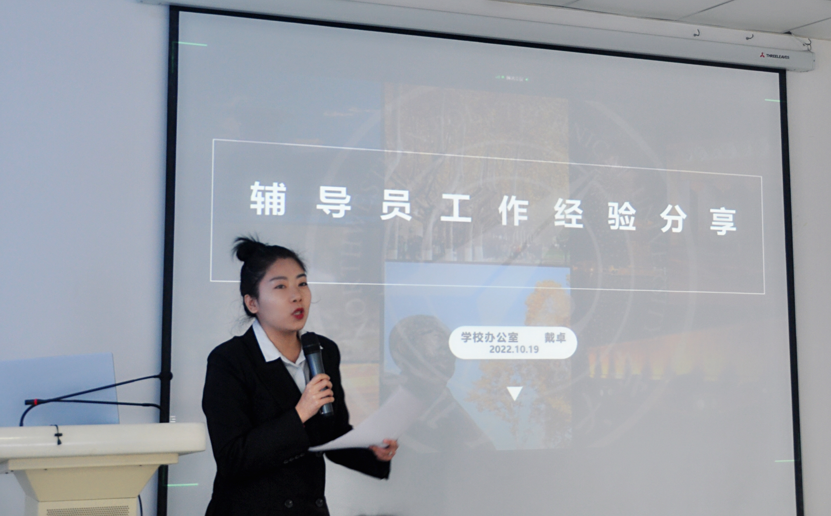 教师王丽进行交流分享辅导员工作。会议由张龙主持。