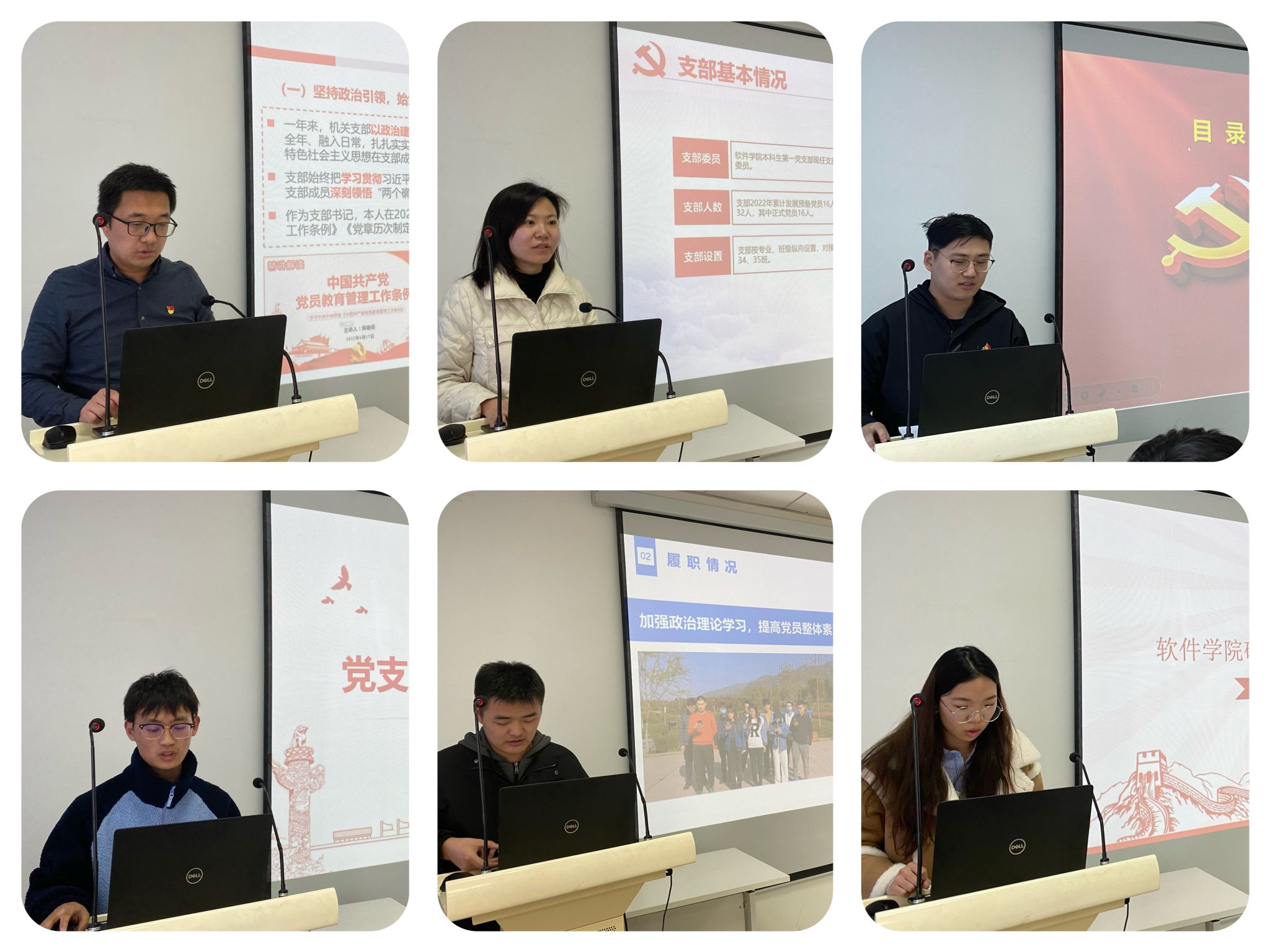 各党支部书记依次开展现场PPT述职,重点围绕深入学习贯彻习近平新时代中国特色社会主义思想和党的二十大精神、落实基层党建工作重点任务、强化党支部政治功能、做好师生思想政治教育、落实全面从严治党要求、加强廉洁教育和纪律作风建设、工作中存在的问题和不足以及下一步工作考虑和计划七个方面展开,用具体事例和数据说话,客观反映成效和问题,全面介绍党支部2022年度开展工作。参会人员根据党支部书记述职内容进行现场打分。