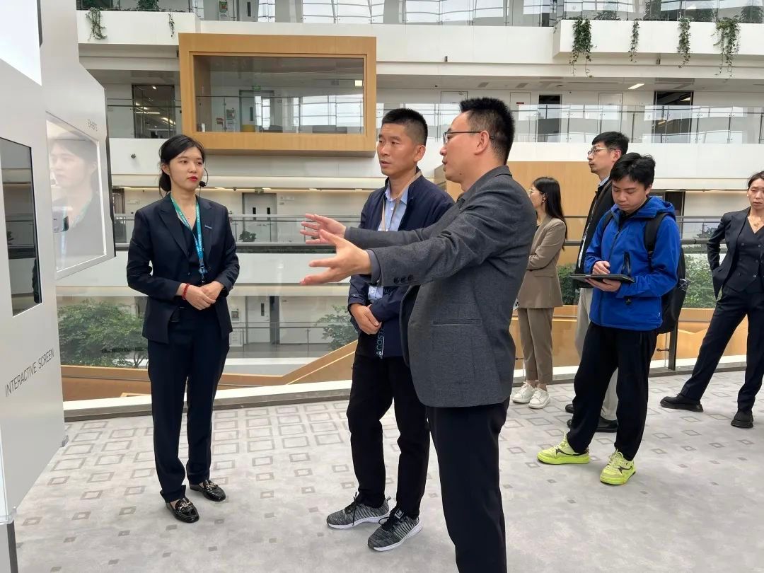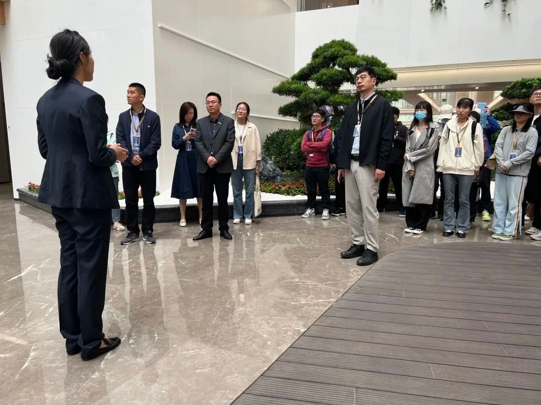 一行参观了西安数字建筑研发大厦建筑,员工服务大厅,共享办公区,健身房等,同学们以第一视角了解企业深耕行业20余载的企业发展史、相关业务领域、企业自身核心技术自主权与专利著作。