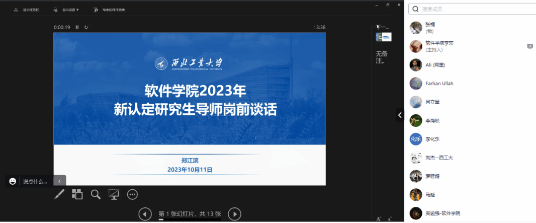 全体2023年新认定研究生导师参加会议,本次导师岗前谈话紧密围绕研究生导师立德树人、岗位职责开展。
