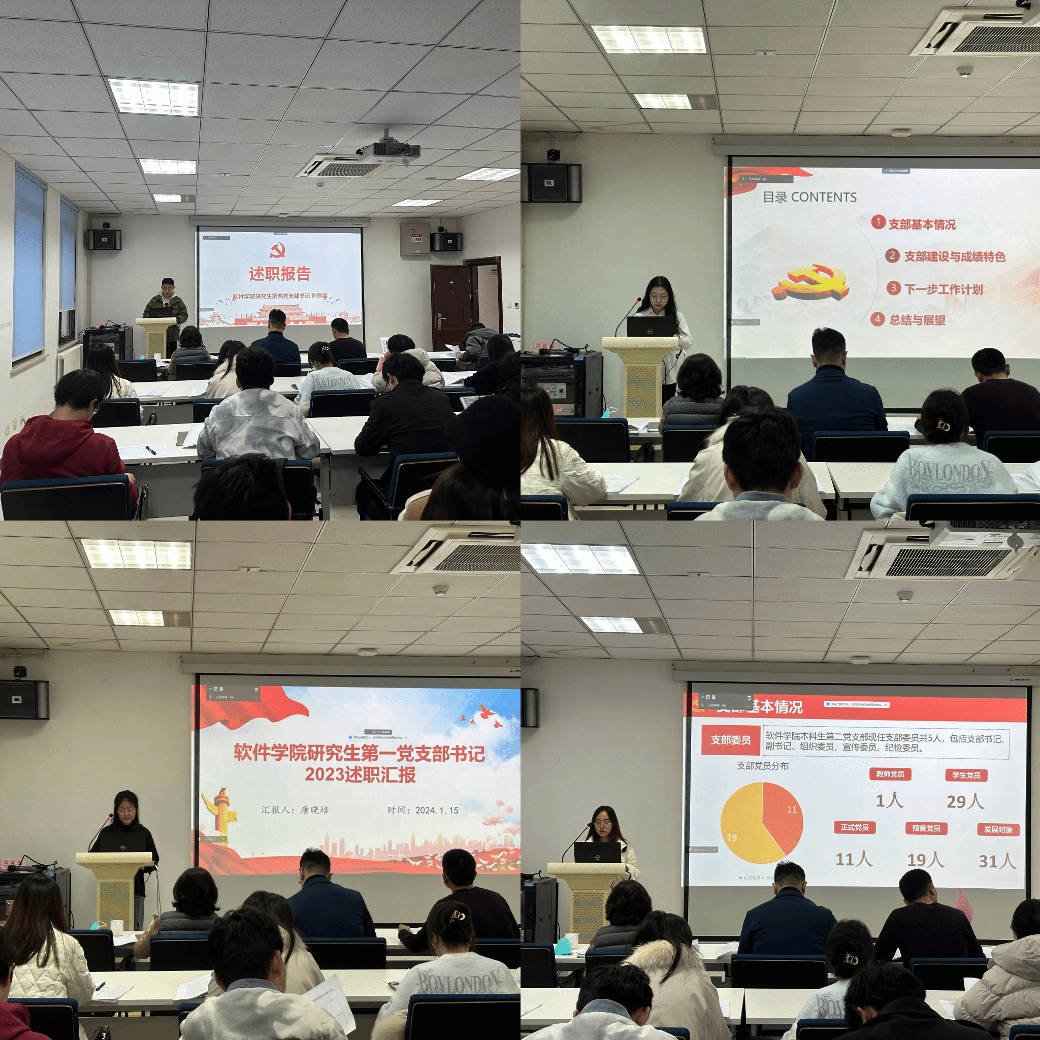 述职采取现场PPT 述职和书面述职相结合的方式开展。述职内容围绕深入学习贯彻党的二十大精神、落实基层党建工作重点任务、强化党支部政治功能和组织功能、做好师生思想政治教育、加强廉洁教育和纪律作风建设、存在的问题和下一步计划开展。与会领导逐一点评,肯定各支部取得的成绩,指出了问题和改进的建议,为支部工作明确了努力的方向。