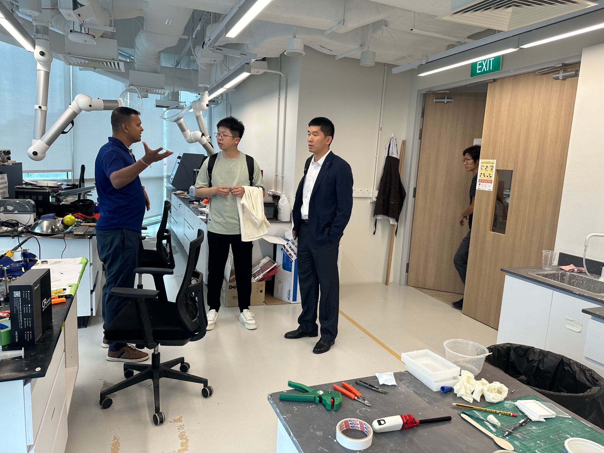 3月27日上午,代表团一行前往南洋理工大学Computing Aided Engineering(CAE)进行参观调研,对实验室成果和现研课题进行了了解。随后同蔡弈渔教授开展基于虚拟现实和增强现实以及三维视觉感知相关课题的科研合作,并对学生短期科研访学、实习实践等进行了细致交流。