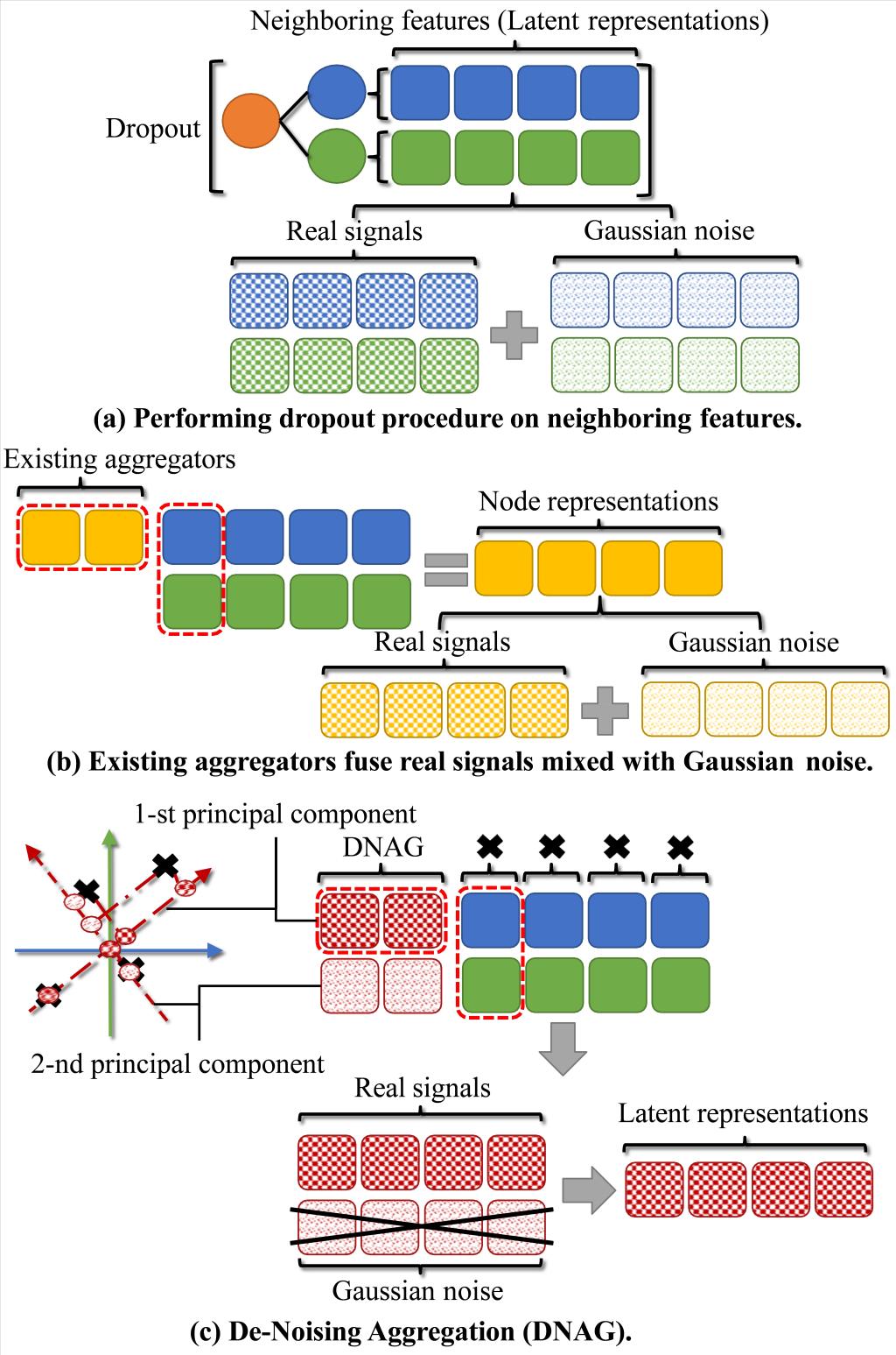 在TII 2022: De-Noising Aggregation of Graph Neural Networks by Using Principal Component Analysis文章中,作者指出,为了避免图神经网络应用在测试集上的过拟合现象,通常在其特征编码器中加入Dropout操作来增加模型的泛化特性。然而,该操作不可避免地会在图神经网络的聚合算子中引入高斯噪声,污染了该聚合算子的聚合信号。为了解决这一缺陷,该文提出了一种去噪聚合算子,该聚合算子利用主成分分析算法提取真实的聚合信号,并去掉高斯噪声。与主成分算法常常用于压缩特征维度不同,该文提出的方法用于压缩节点邻域子图的信号维度,使得该图聚合算子具有良好的去噪能力。该文还提出了一种简化的模型训练结构,在训练之前,仅通过计算一次代价昂贵的主成分分析算法,便可得到具有去噪功能的聚合算子。在多个数据集上的实验表明,该文的去噪聚合算子提高了图神经网络的性能,达到了去除噪声的目的。(论文链接:)