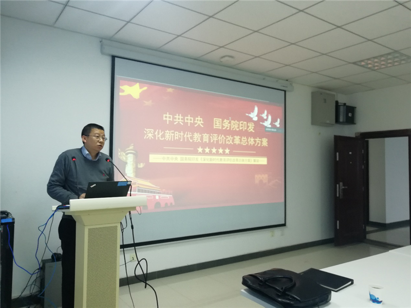 党委书记陈洪亮带领大家学习了《总体方案》的主要内容,包括总体要求、重点任务、组织实施三个部分,陈洪亮着重为大家阐述了重点任务中改革教师评价和改革学生评价两个部分,并就当前骰宝游戏