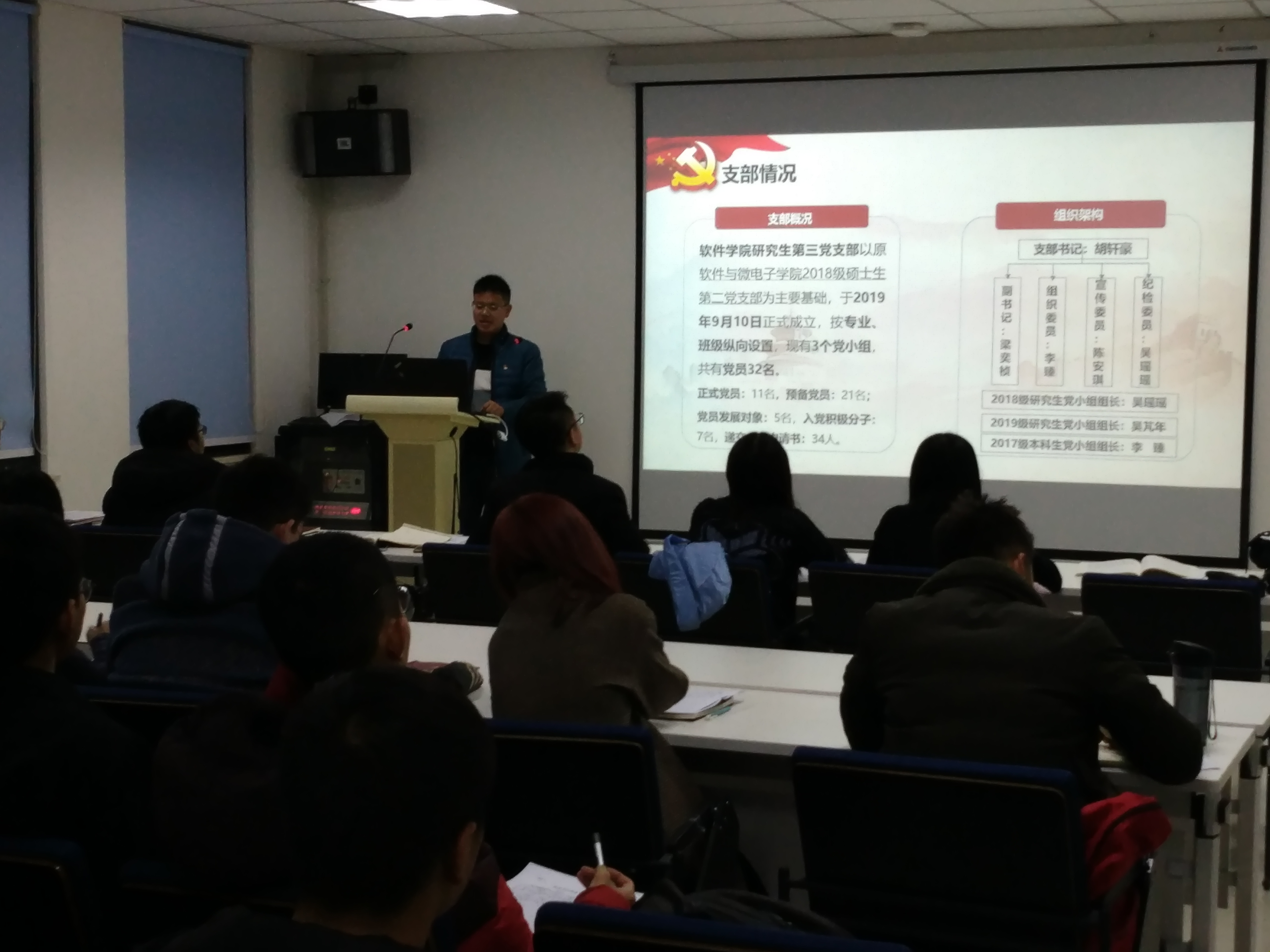 研究生第三党支部深入组织开展了支部委员间及与支部党员的谈心谈话,并于2019年12月2日晚在启翔楼401会议室召开了“不忘初心、牢记使命”专题组织生活会,同时开展党员民主评议工作。本次会议由支部书记胡轩豪同志主持,支部所有在校同志参加,2017级本科生辅导员陈智通老师列席会议。