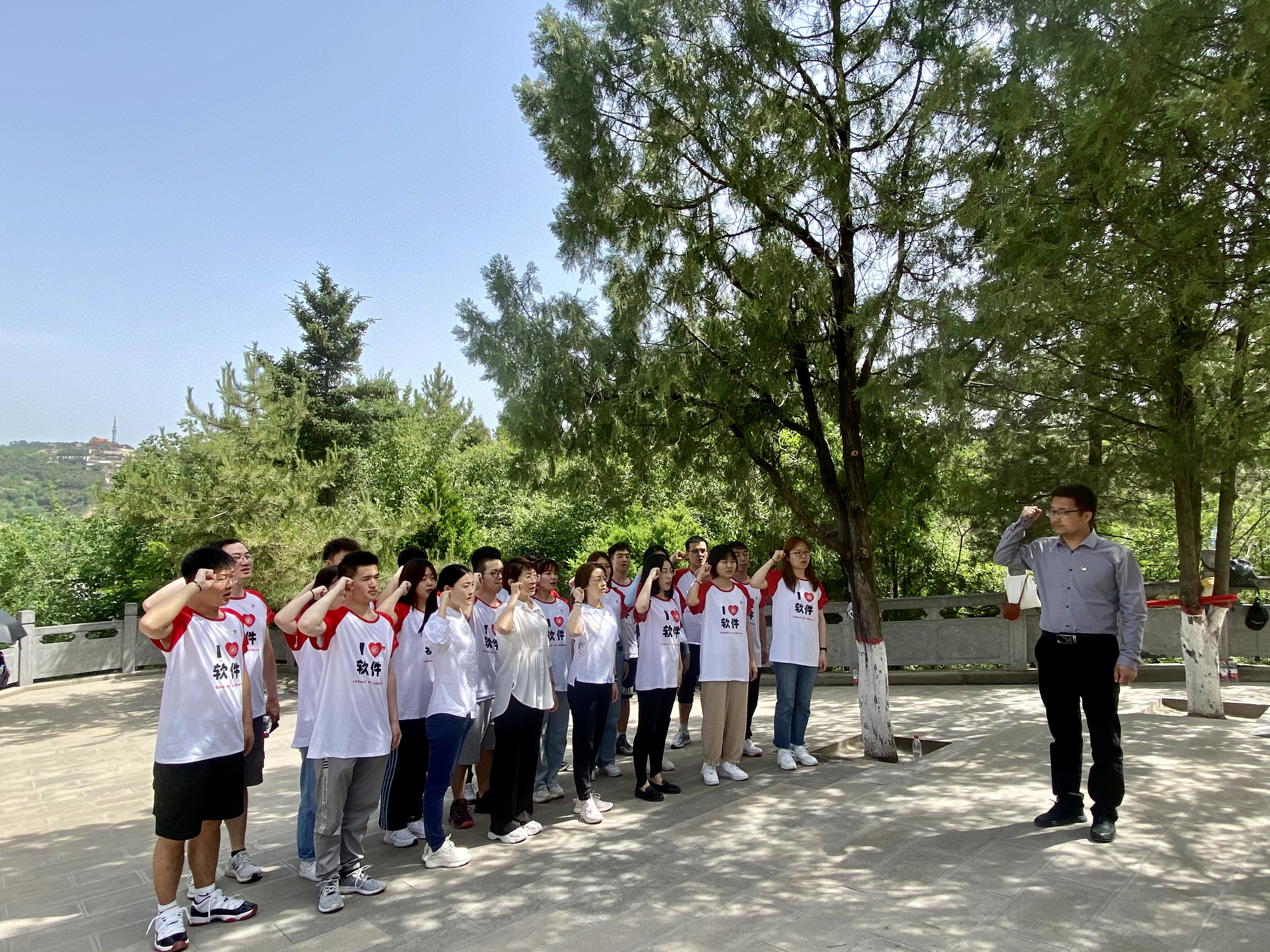 “巍巍宝塔山,滚滚延河水”。置身于宝塔山下,仰视那傲然耸立的巍巍宝塔,心中肃然起敬。在这里大家一起追忆重温入党誓词,初心可鉴。