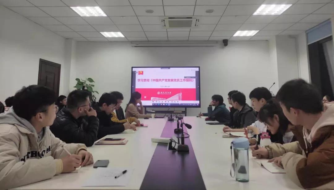 组织部组织员麻美龄老师为全体支部委员作题为《学习贯彻〈中国共产党发展党员工作细则〉》的专题培训。
