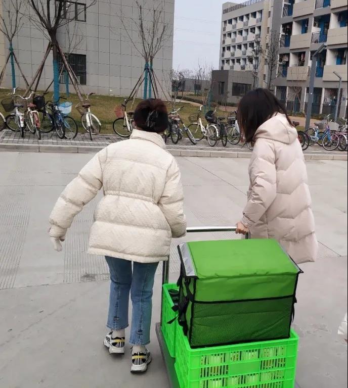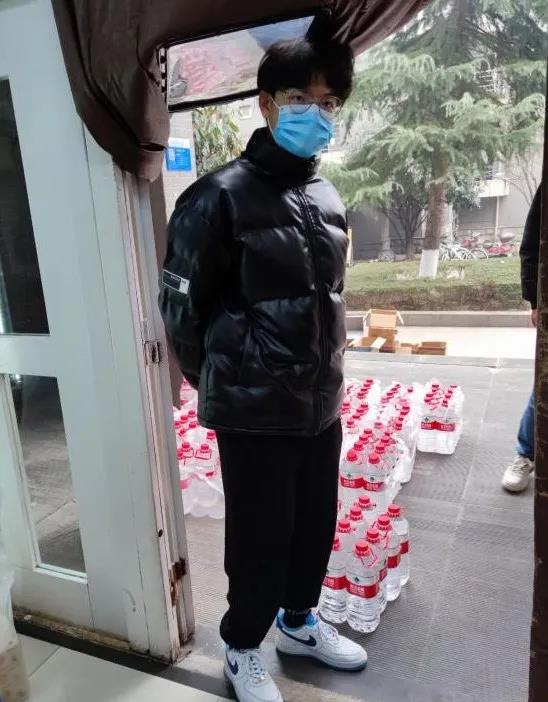 (在宿舍门口输送物资的尹皓轩)