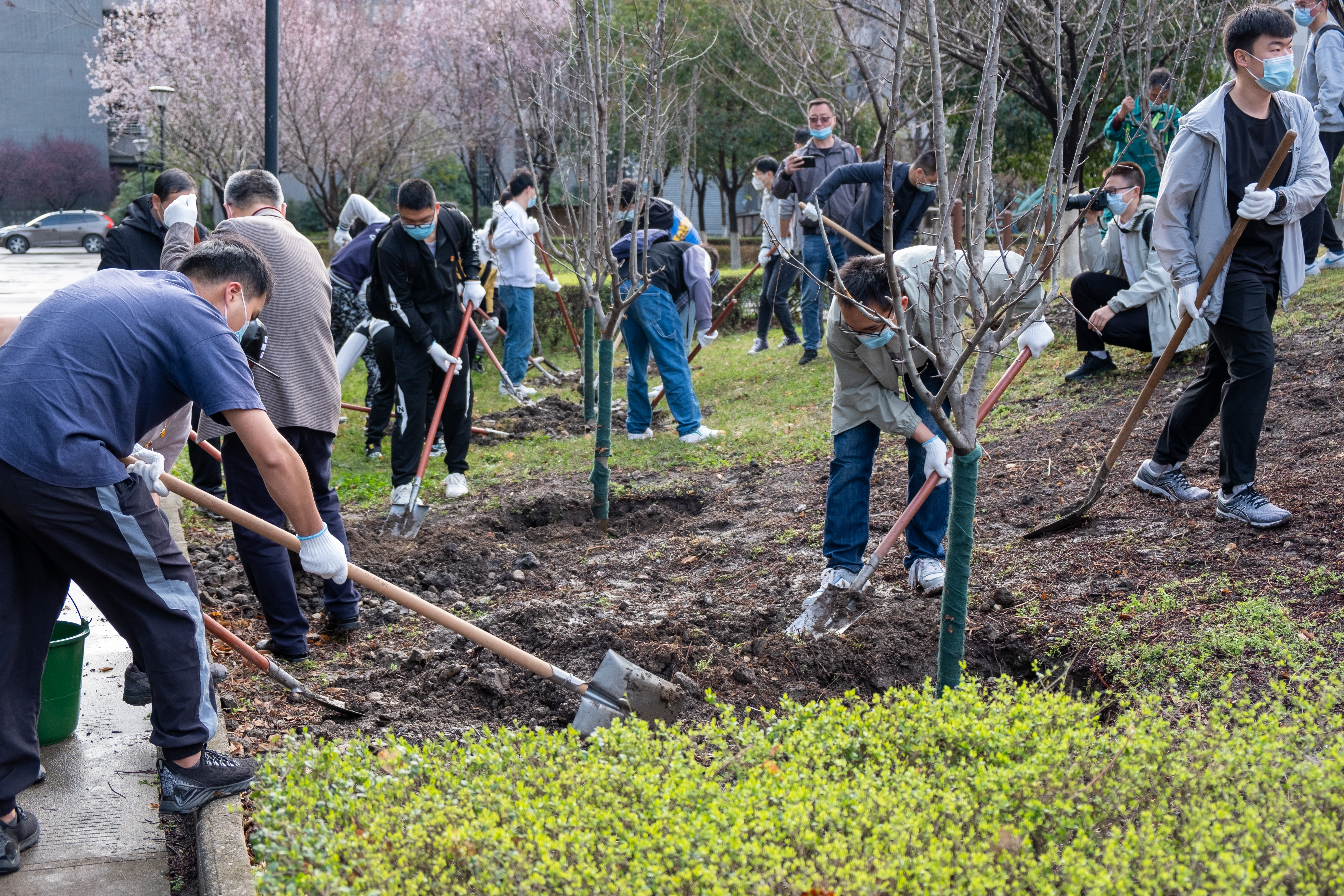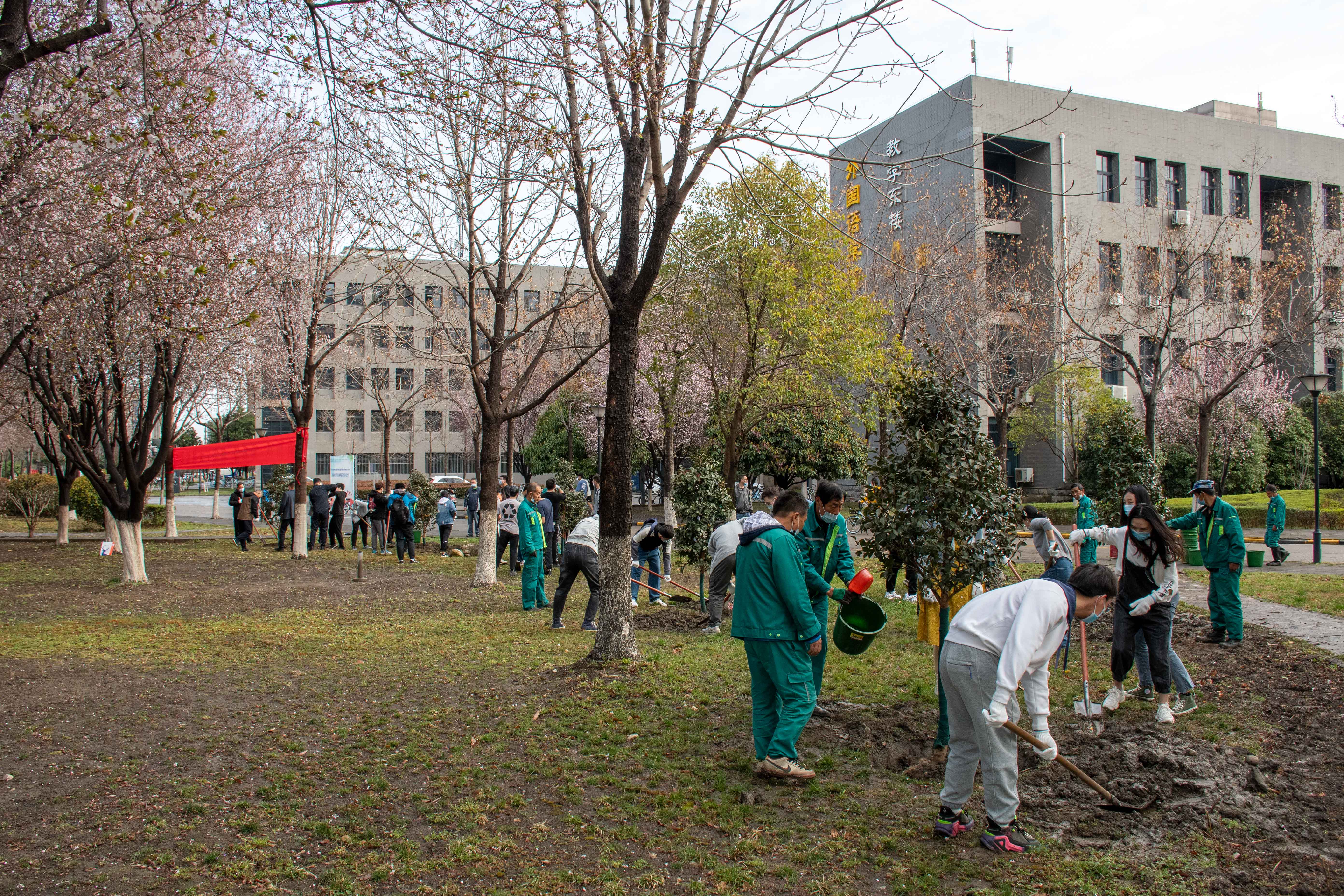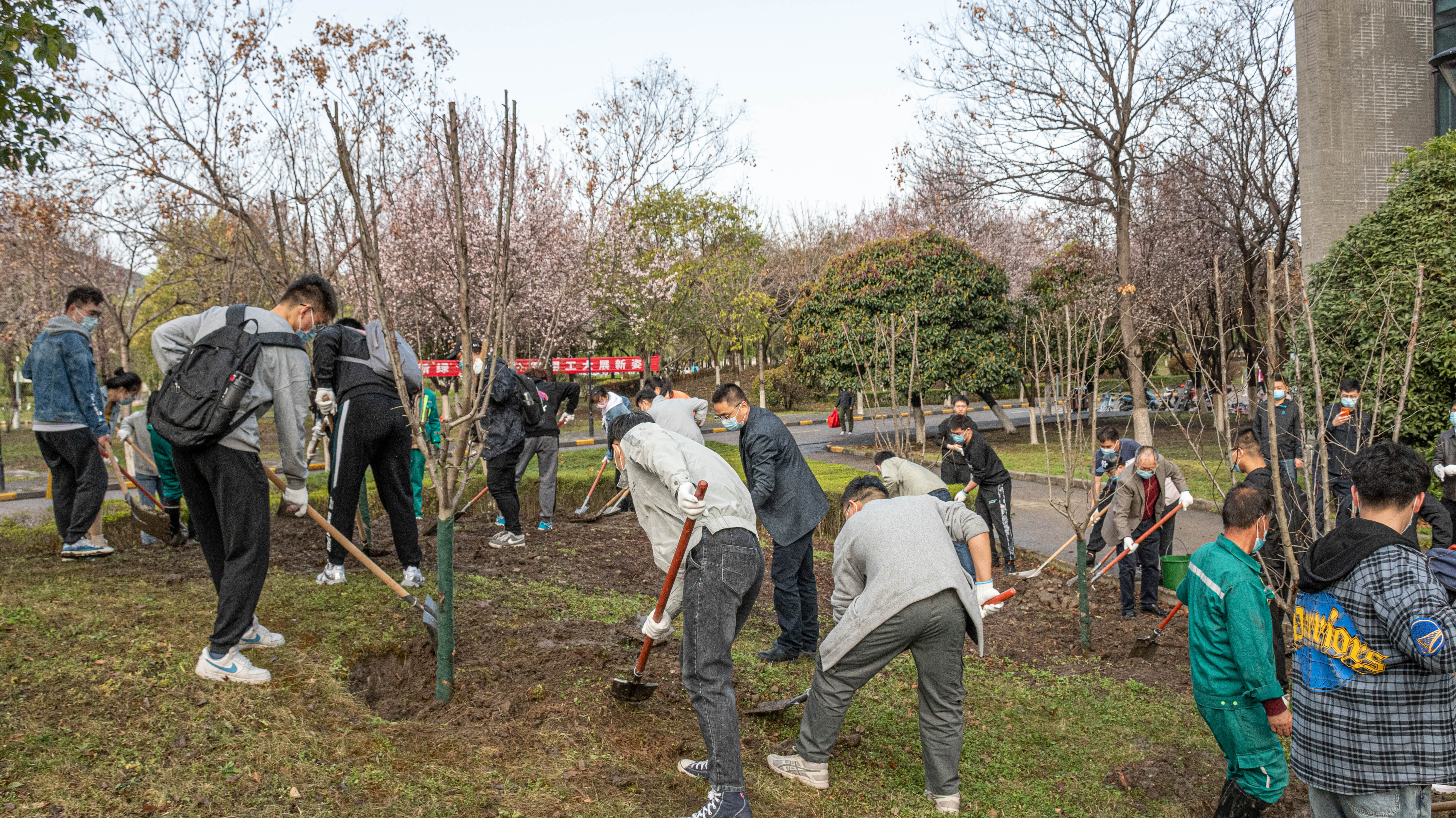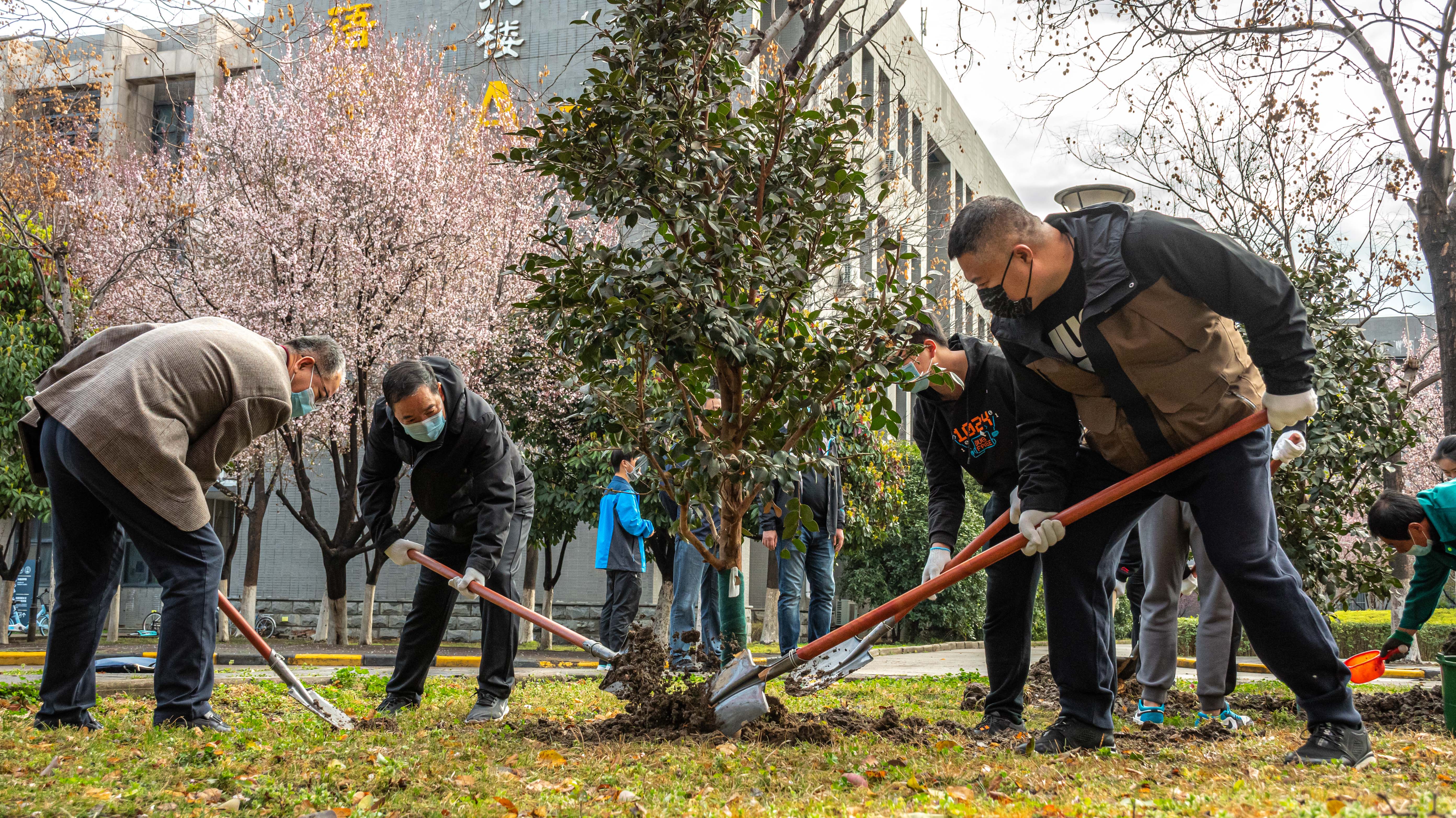 研究生第五党支部的学生们一起,齐心协力种下新的一年的点点新绿。