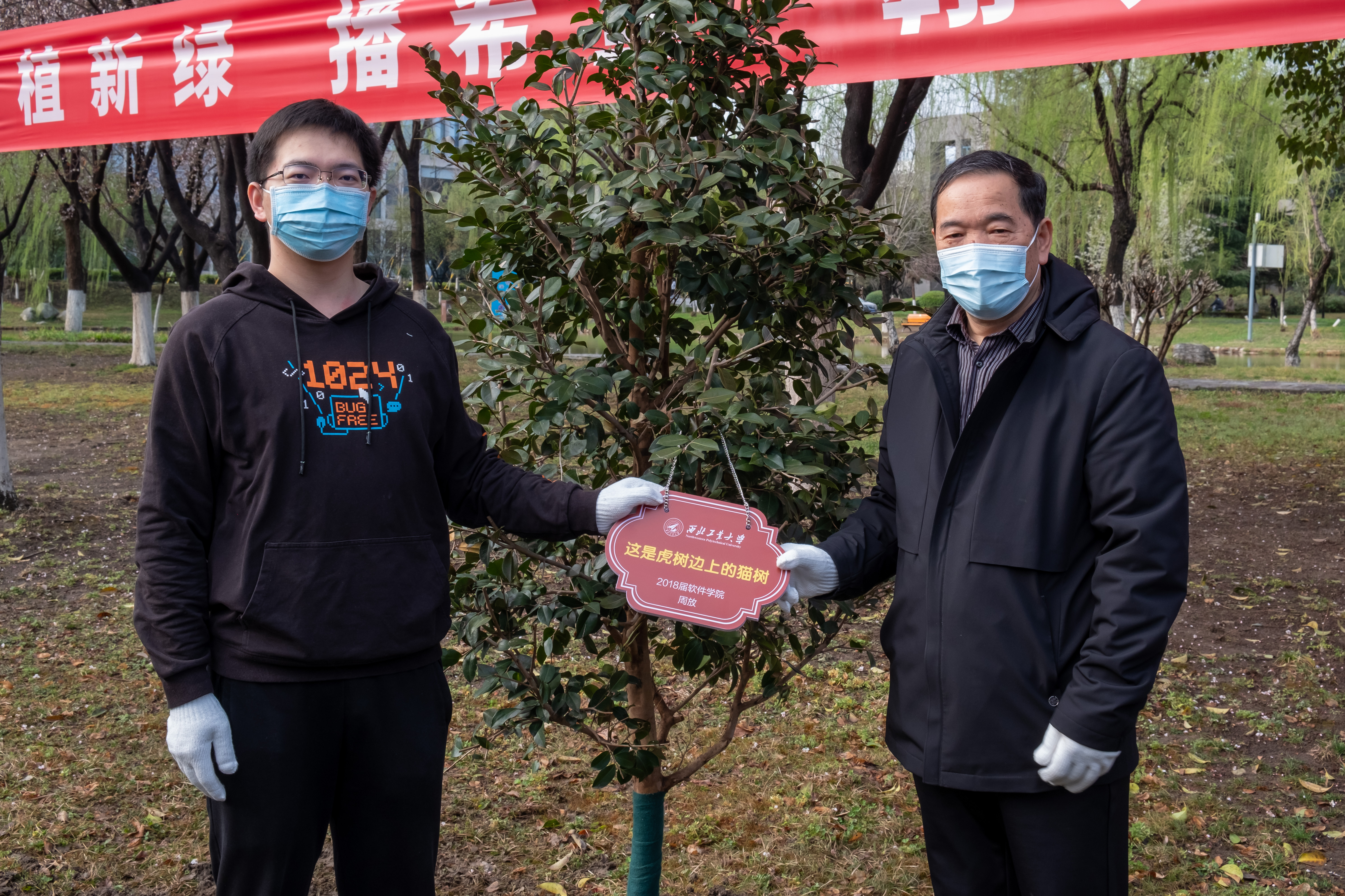 2022届本科生毕业生周放与陈建有副书记一同认领毕业树)