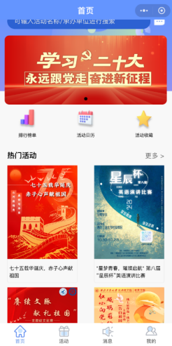 精心策划并采用了多种多样的宣传方式,力求让每一位同学都能知晓这次意义非凡的活动。其中包括色彩鲜艳、设计精美的海报,它们张贴在校园的各个公告栏上,像是热情的使者,向过往的师生传递着活动的信息;醒目的横幅横跨在校园的主干道上空,“七十五载华诞庆,赤子心声献祖国”,铿锵的口号在阳光下熠熠生辉,吸引着大家的目光;还有一张张精心制作的宣传单,被志愿者们分发到同学们的手中,宣传单上详细地介绍了活动的内容和参与方式;网络平台上的推文也在不断地更新着,用生动的文字和精彩的图片展现活动的魅力;我们还打造了专门的视频号,里面发布的视频以直观、有趣的形式向大家展示活动的精彩瞬间;更值得一提的是我们可爱的团团小文体,它们在校园里活跃地穿梭,成为了一道独特的风景线,让同学们眼前一亮。就这样,无论你是漫步在绿树成荫的校道上,还是在教学楼、图书馆、食堂这些地方穿梭,都能强烈地感受到这次活动浓郁的氛围,仿佛整个校园都沉浸在一片欢乐又充满激情的海洋之中。