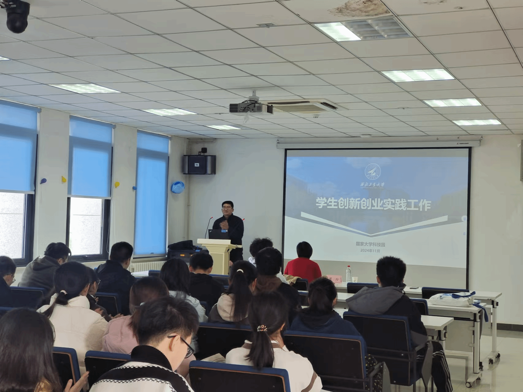 周玲介绍了学生创新创业实践工作的开展情况,并为大家准备了内容详实的工大翱翔众创空间的宣传手册,重点说明了学生创新创业项目培育、孵化服务、政策支持等情况,细致讲解了工大翱翔众创空间学生创新创业团队的入孵条件、入孵流程。