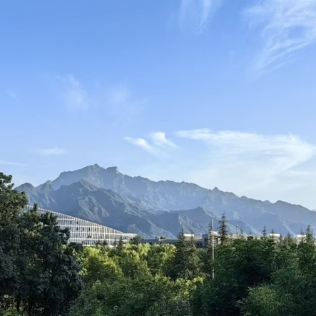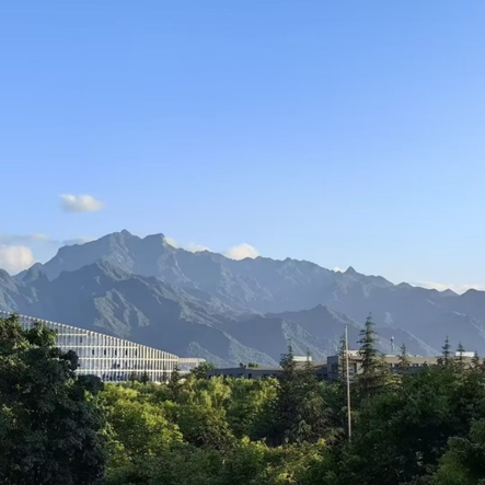 在晚霞的映衬下,启翔楼的灰色外墙显得格外庄重与优雅,它的尖顶与大窗户设计展现出现代建筑的独特美感,仿佛是知识与梦想的殿堂。远处巍峨的雪山与金色云彩交相辉映,为校园增添了一份静谧与神秘。这幅画面不仅是视觉上的享受,更象征着大学生活中理想与现实的交汇。启翔楼承载着学生们的奋斗与探索,而背景中的雪山则寓意学术追求的巅峰与挑战。这一刻,大学生活的充实与诗意尽显无遗。