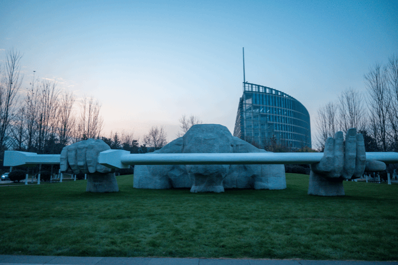 剑锋犹如一把利器,凝聚着无数人的智慧与力量,象征着为国家强盛与民族复兴而不懈奋斗的决心。雕塑矗立在校园中央,承载着厚重的历史与时代责任,激励着每一位学子在科技创新、国家发展中肩负起属于自己的使命与担当。在这里,铸剑不仅是对技术的磨砺,更是对理想与信念的锻造。每一位学子都怀抱梦想,立志成才,为国家的繁荣与未来贡献自己的智慧与力量。