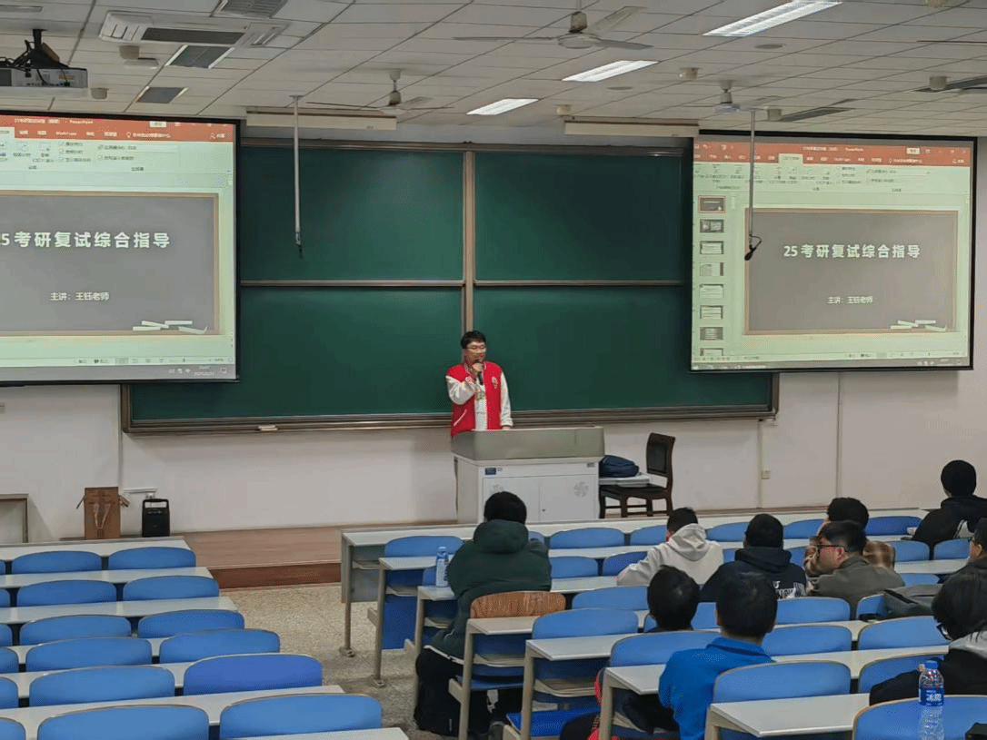 于2月27日下午在教西D201举办“研途筑梦复试护航”专题辅导活动。活动通过“名师策略指导+朋辈经验共享”双轨模式,100余名25届考研学生参与,为即将到来的复试季注入强心剂。
