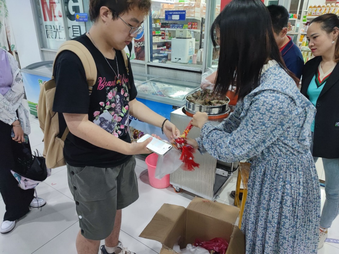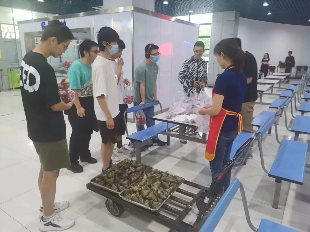 热气腾腾的粽子在云天苑餐厅出锅,一份份地装好,和精致的香包一起等待着同学们来领取。随粽子和香囊一同赠出的,还有来自骰宝游戏