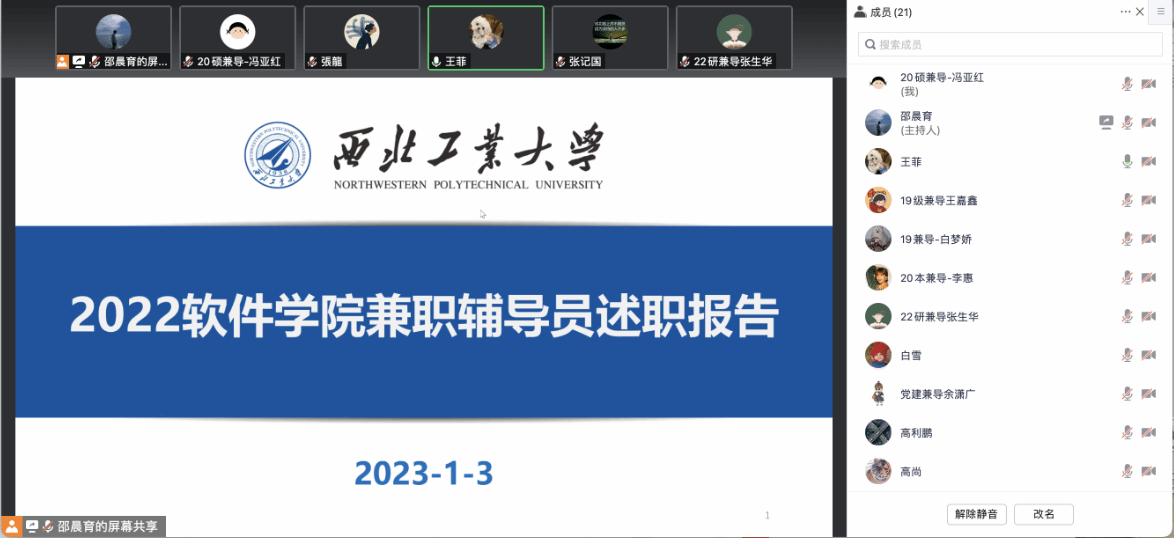 为加强骰宝游戏 学工队伍建设以及兼职辅导员队伍建设,全面客观评价兼职辅导员工作实绩,充分调动兼职辅导员工作积极性、主动性和创造性,促进兼职辅导员认真履行岗位职责,1月3日上午,骰宝游戏 组织开展2022年度兼职辅导员述职考核,骰宝游戏 党委副书记(主持工作)李晗、党委副书记张龙、各专职辅导员、学生工作助理和兼职辅导员通过线上方式参会。会议由研究生学生工作助理王菲主持。