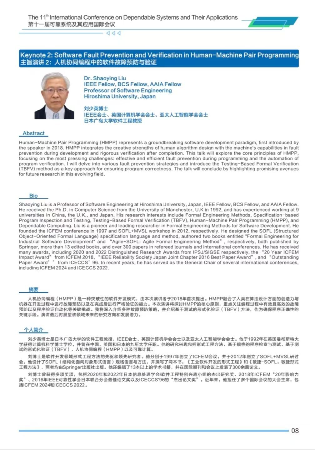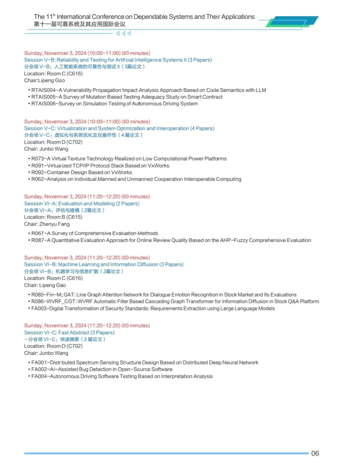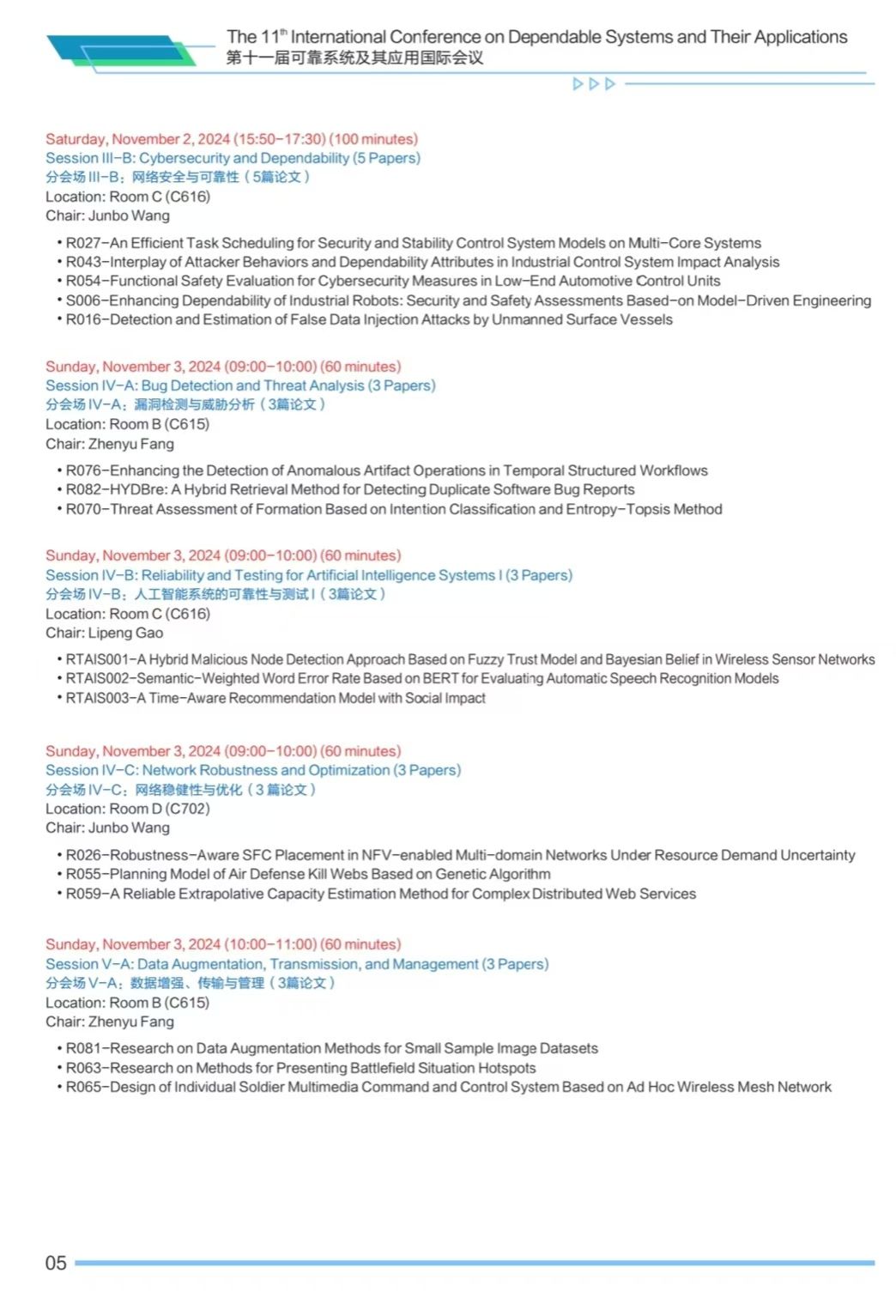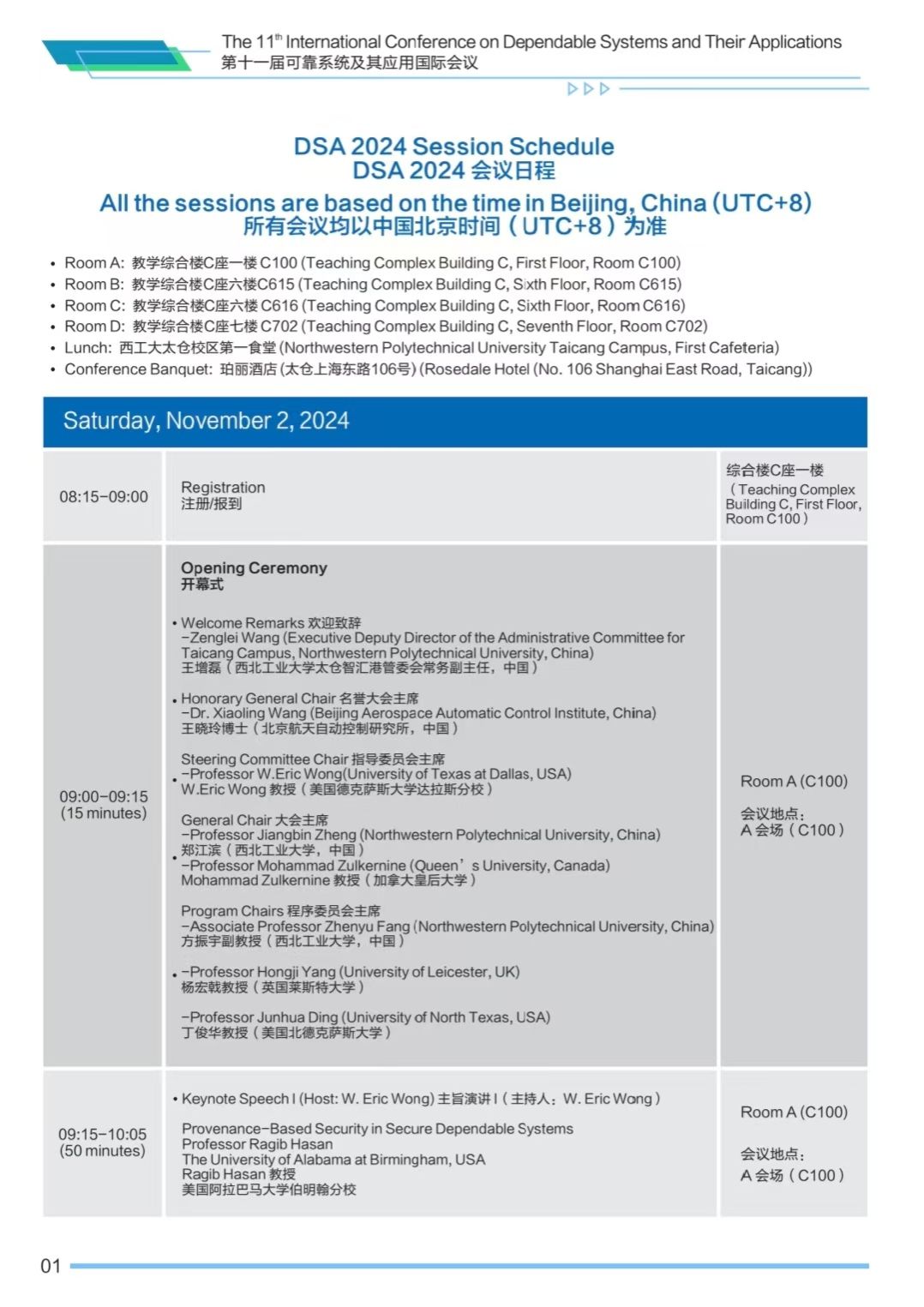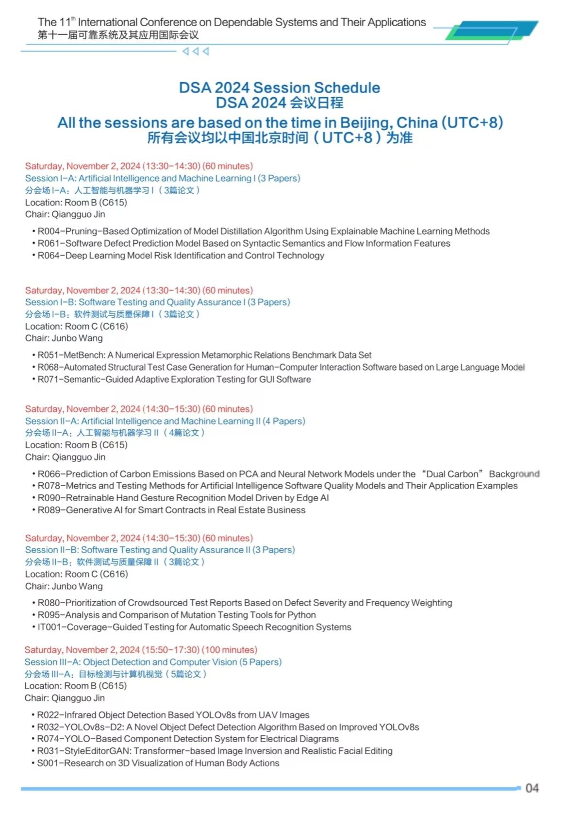 第十一届可靠系统及其应用国际会议(DSA 2024)将于2024年11月2日-3日在骰宝游戏 太仓智汇港举办,会议安排如下,欢迎各位专家学者参会交流。