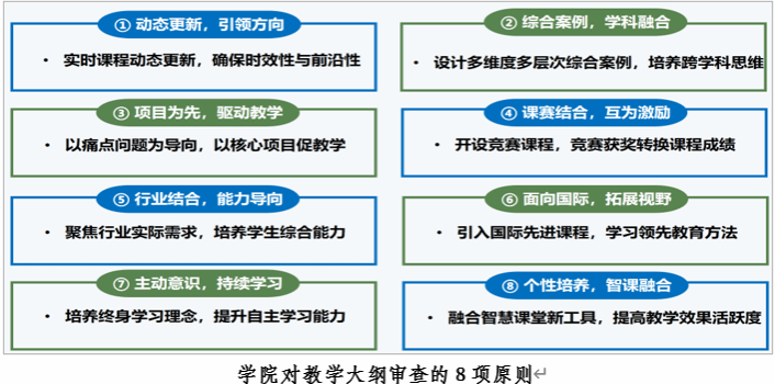 制定了对教学大纲审查的8项原则,依据8项原则,重点审查教学内容设置的合理性、思政案例融入是否恰当、考核方式是否支撑教学目标、课程目标对毕业要求的支撑是否合理,以及与骰宝游戏