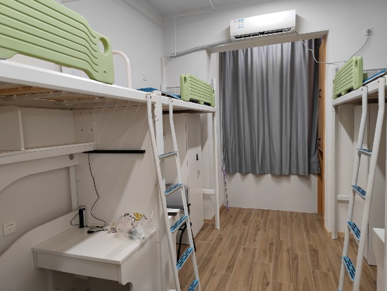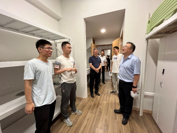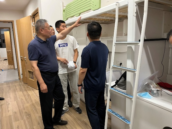 领导和老师们对同学们在未来两周的生活环境进行了查看并指导学生安全使用宿舍的电器设备。