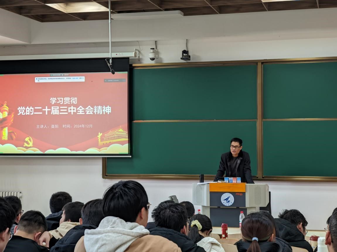 入党积极分子和发展对象培训班的学员们讲授了一堂题为《学习贯彻党的二十届三中全会精神》的专题党课。此次党课旨在帮助同学们深刻理解并贯彻党的最新方针政策,激发他们作为新时代青年的责任感和使命感。
