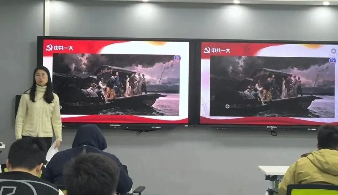 学生第六党支部钟香平分享的是中共一大和中共七大的故事。中国共产党第一次全国代表大会于1921年7月23日至8月初在上海和浙江嘉兴召开。一大召开标志着中国共产党的正式成立,犹如一轮红日在东方冉冉升起,照亮了中国革命的前程。七大大会一致通过了毛泽东的政治报告、朱德《论解放区战场》的军事报告和刘少奇修改党章的报告及新党章。七大确立毛泽东思想为党的指导思想并写入党章。