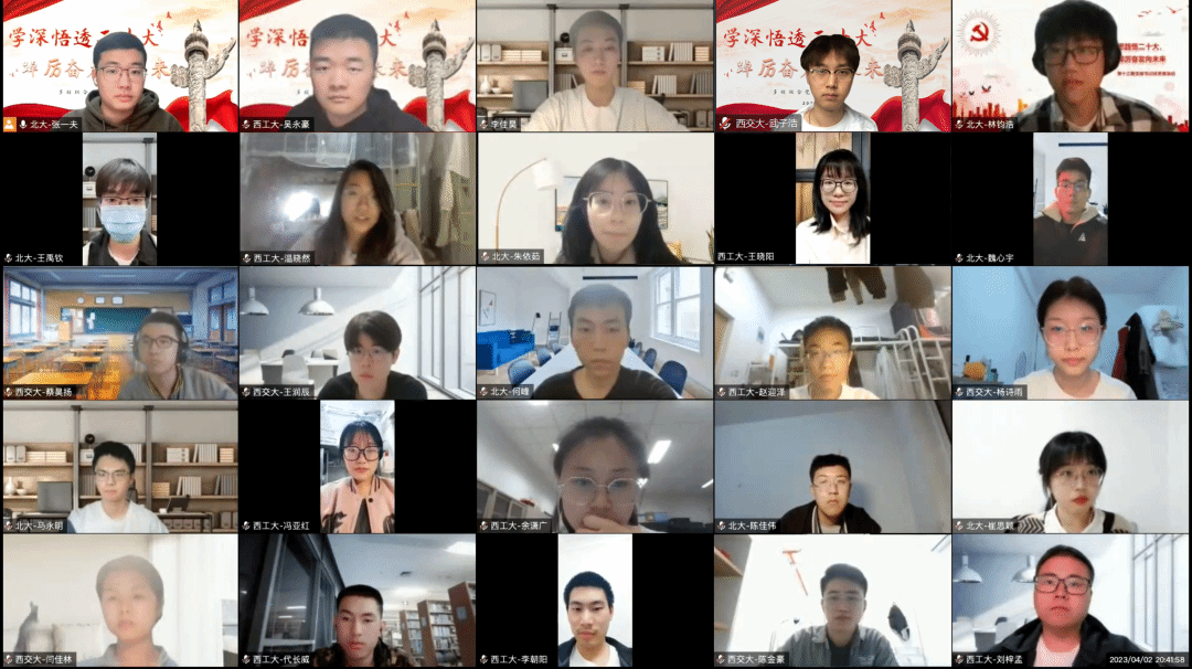 特色资源,面向全院党支部开展了“与你有元”活动,对历史中的红色标志性建筑进行了还原,从虚拟场景中学习党的二十大精神和思想,在游戏中了解历史和政治知识,提供更丰富、更多样化的学习体验。支部积极探索高校学生党支部学习交流新模式,组织建设互促、取长补短、携手并进,与北京大学、西安交通大学共同开展“学深悟透二十大,踔厉奋发向未来”多校联合党团日活动,进一步增强高校研究生党支部间的交流,更好地发挥党组织战斗堡垒和党员先锋模范作用。支部用心用情打造有温度的党组织,持续增加党组织凝聚力,扩大党组织影响力,焕发党组织生命力,开展了“捐赠书籍奉爱心,雷锋精神伴我行”主题党日活动,号召毕业生献爱心,捐献书籍,实现资源不断传承,展出当代大学生无私奉献的精神,引导青年党员以昂扬姿态迎接新时代、奋进新征程。