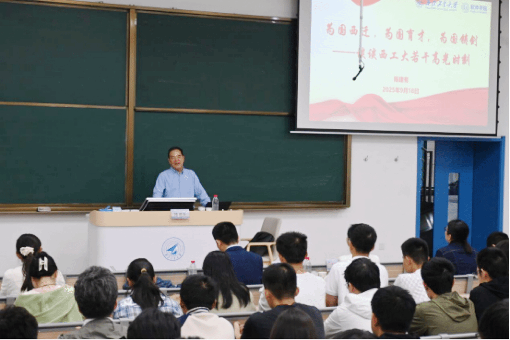 讲座尾声,陈建有进一步点明“天下工大,世界三航”的远景目标——西工大始终与国家同呼吸、与民族共命运,站在新起点,希望每一位西工大学子都能将“为国铸剑”刻进青春坐标,让“西工大身影”始终闪耀在国家需要的地方。