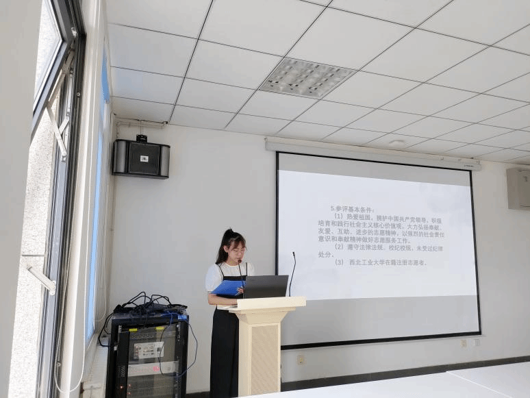 2022-2023学年“最美青年志愿者”“优秀青年志愿者”的申报条件、评选办法以及评选细则。随后,胡雅心鼓励各参会代表积极对本次评选活动提出建议,并强调:作为高校大学生,我们应努力践行社会主义核心价值观,积极参与志愿服务,向上向善,用实际行动谱写青春之歌!