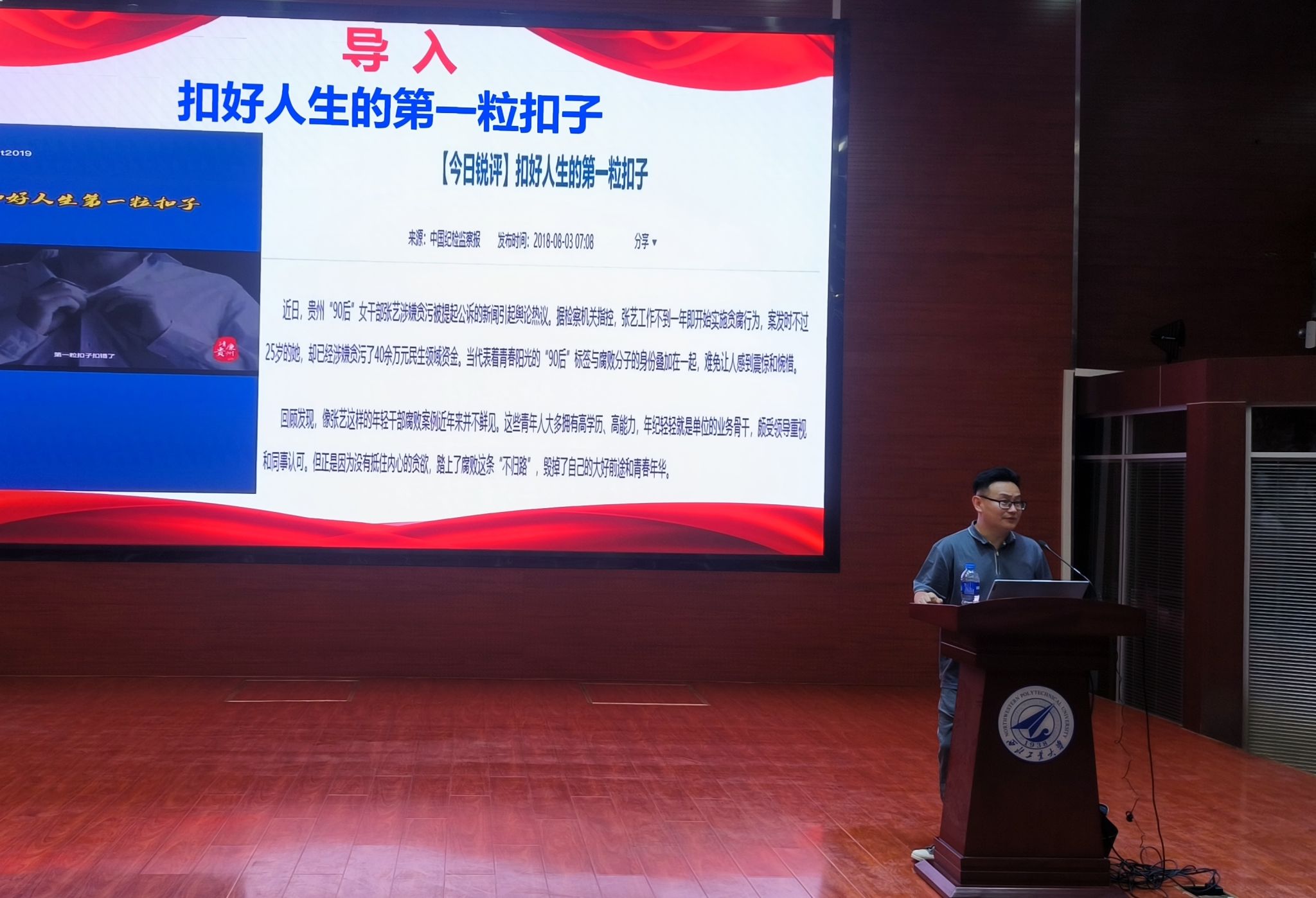 张记国老师在长安校区教学西楼D100为新一期的发展对象和积极分子们讲授《树立廉洁意识,推动廉政治理现代化》主题党课。此次党课旨在加强党风廉政建设教育,增强廉洁自律意识,推动形成风清气正的校园生态。